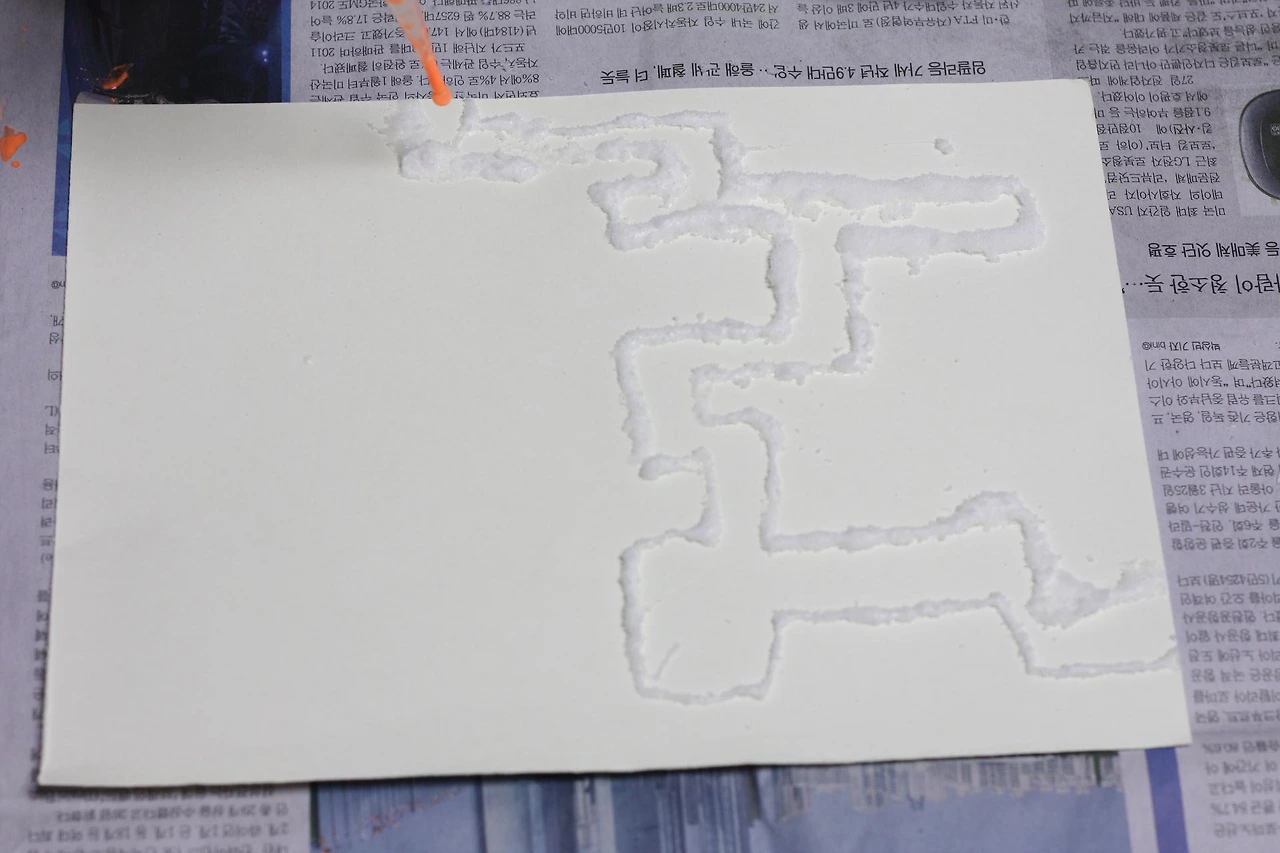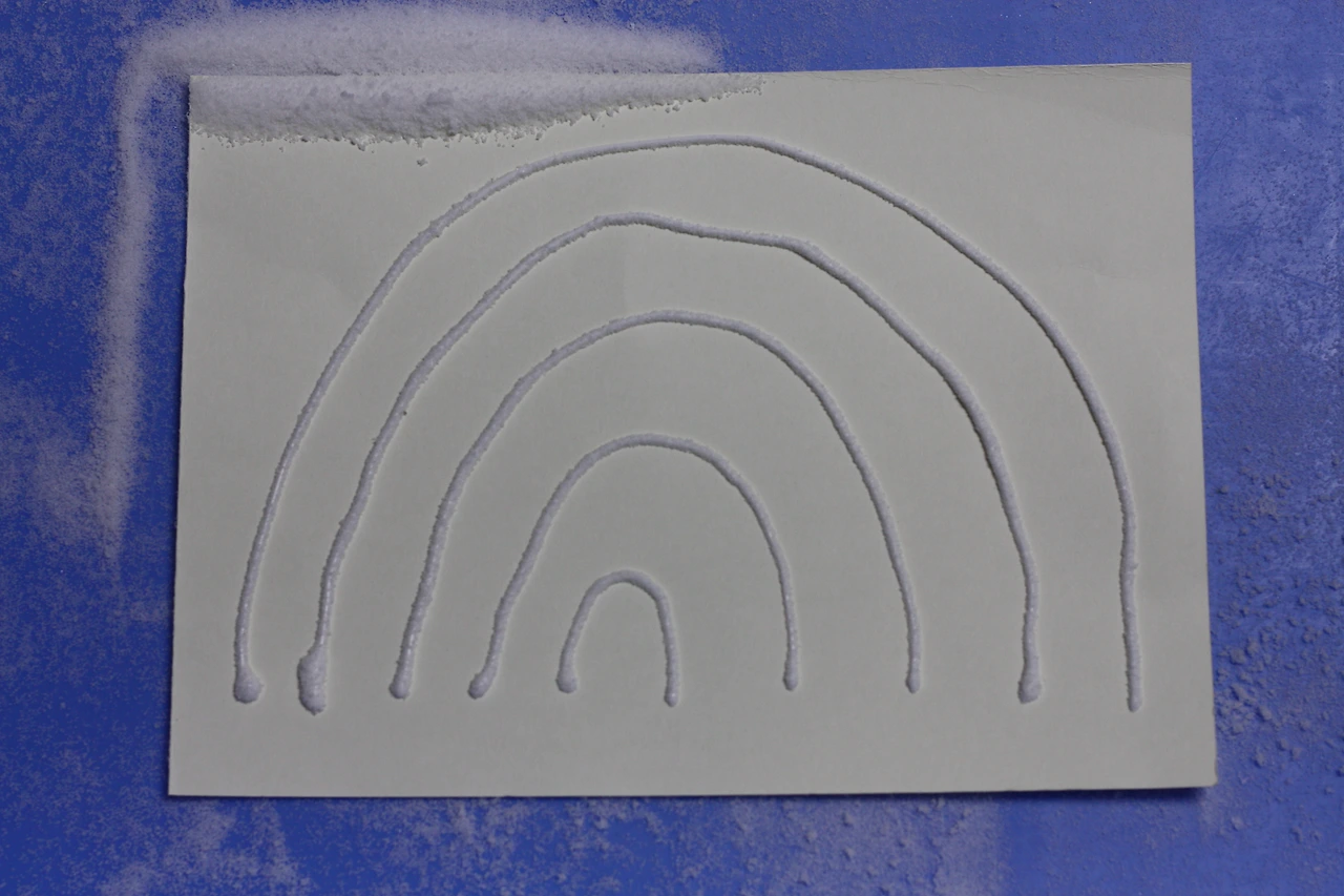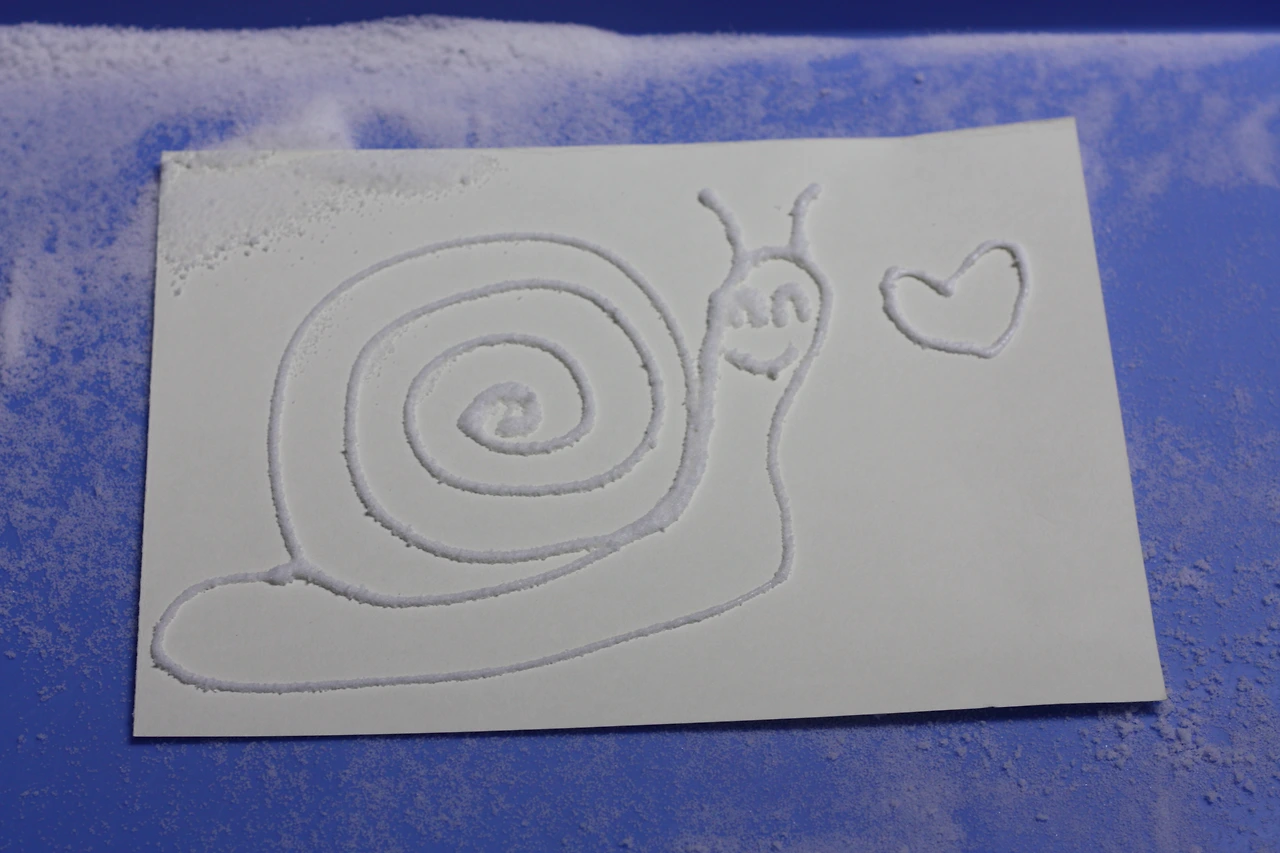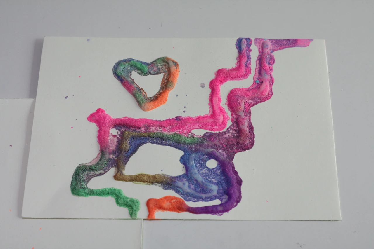붓에 물감을 묻혀서 소금 위를 지나가면