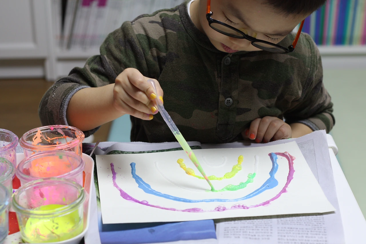 소금 위에 스포이트로 물감을 조금씩 뿌려주는 것이 팁입니다!!!