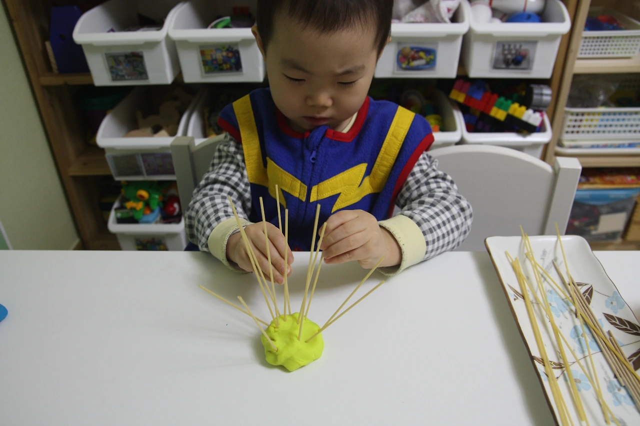스파게티를 점토에 꽂아주세요~
