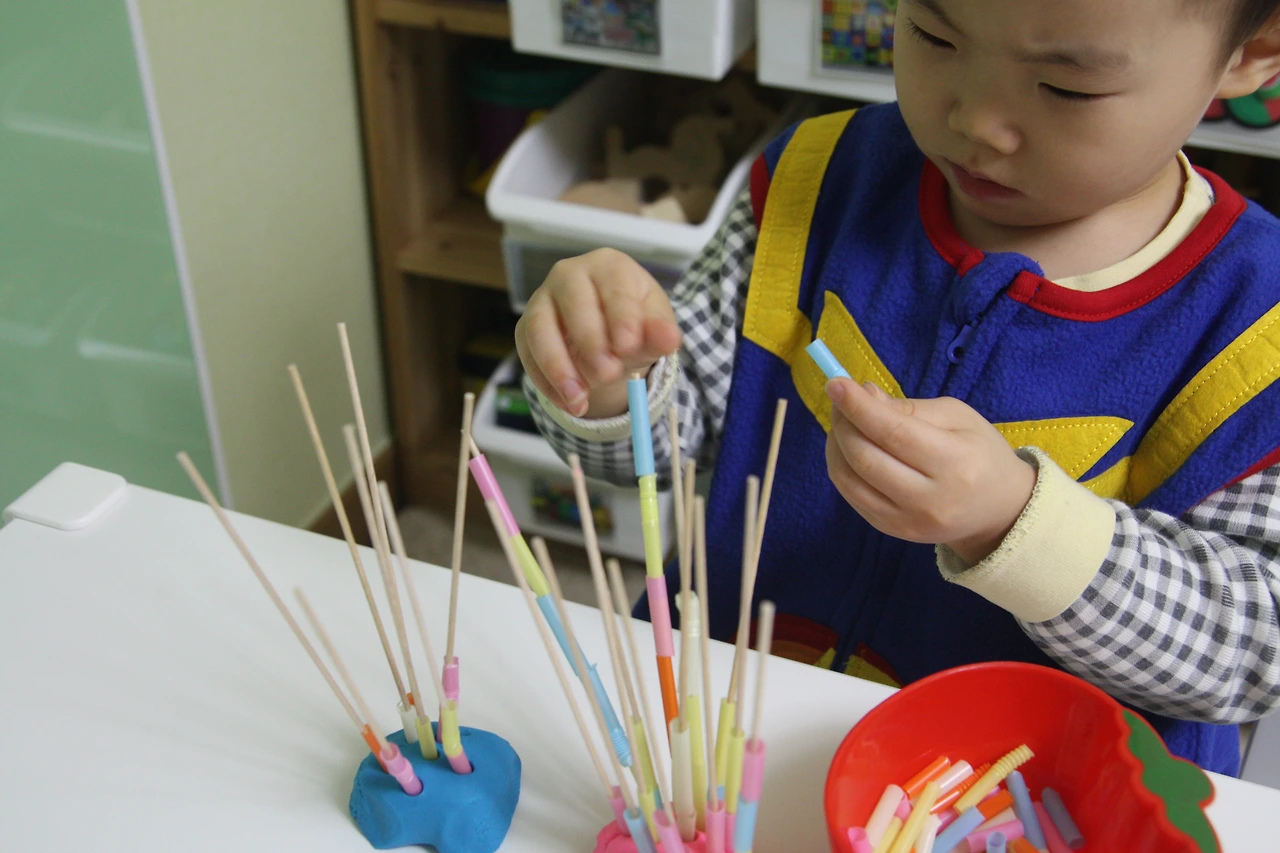 아이가 놀이에 능숙해지면 빨대의 길이를 짧게 해주시면 됩니다~