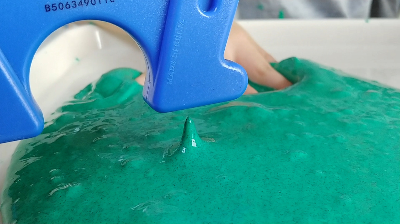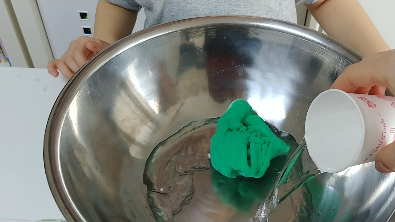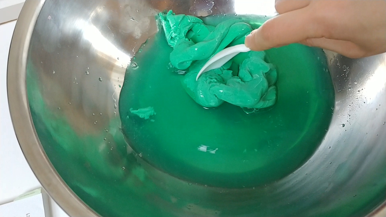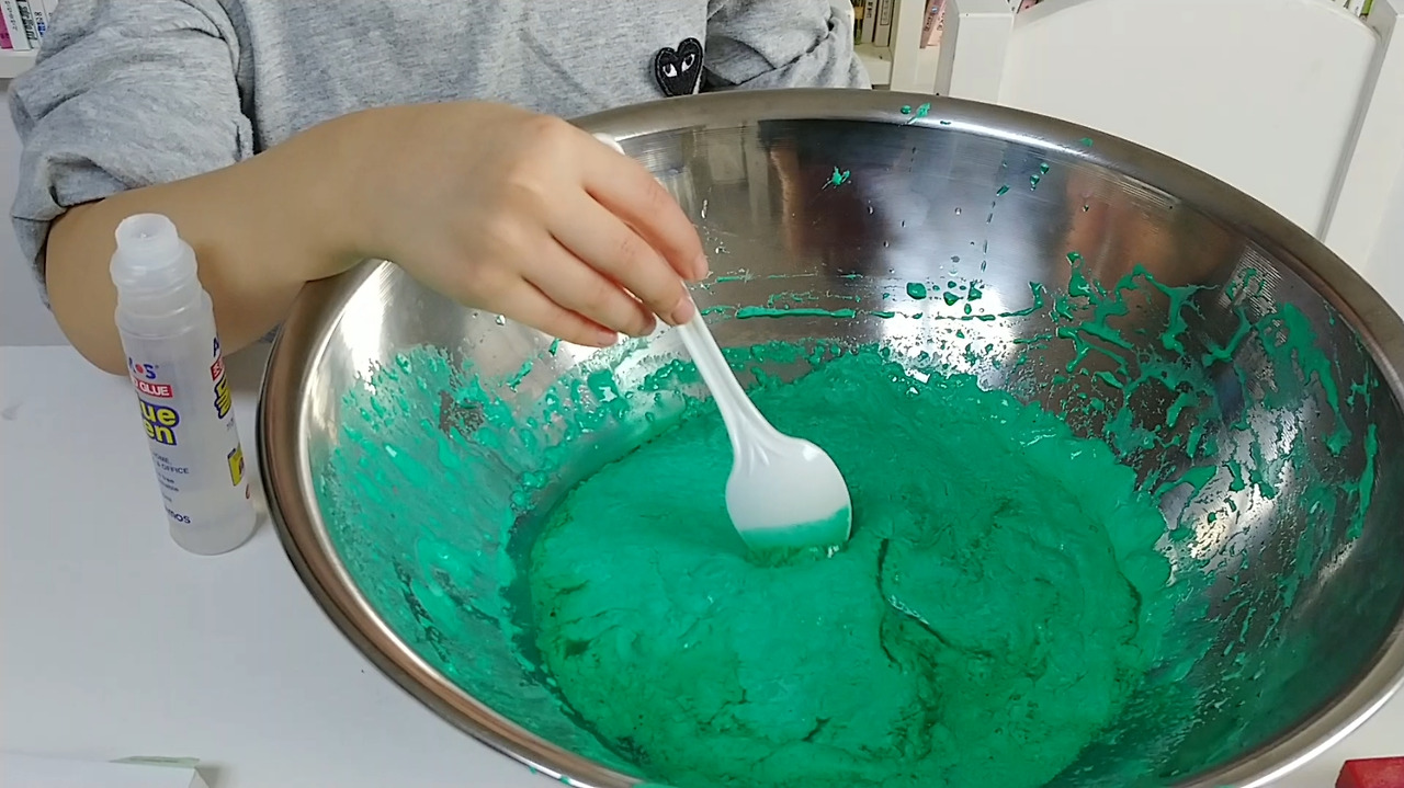 잘 반죽이 되면 그릇과 손에서 액체괴물이 잘 떨어집니다.