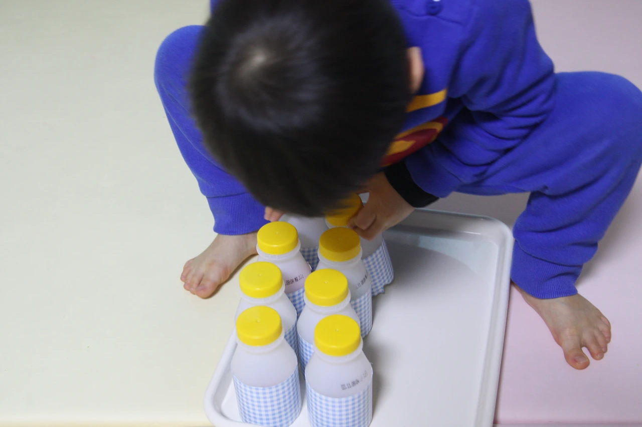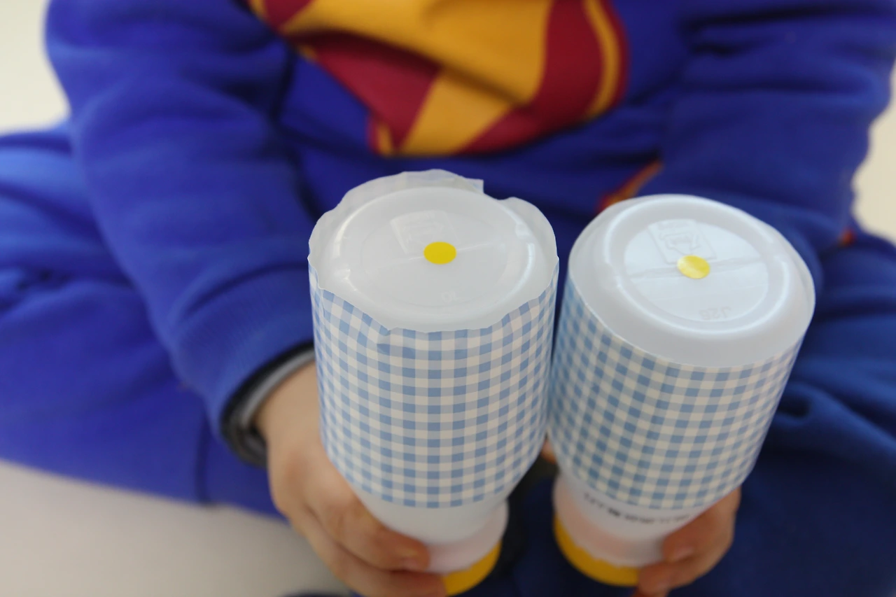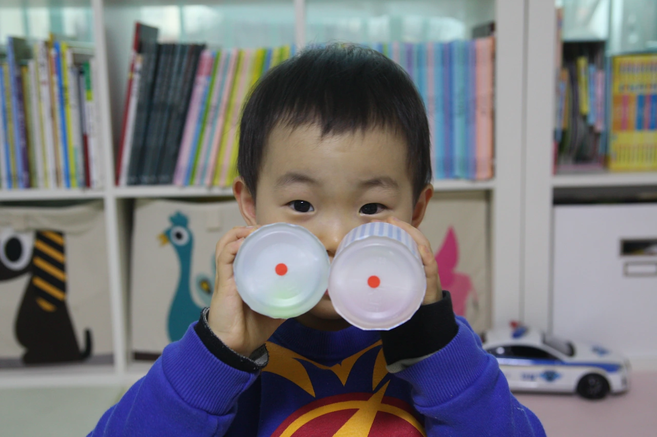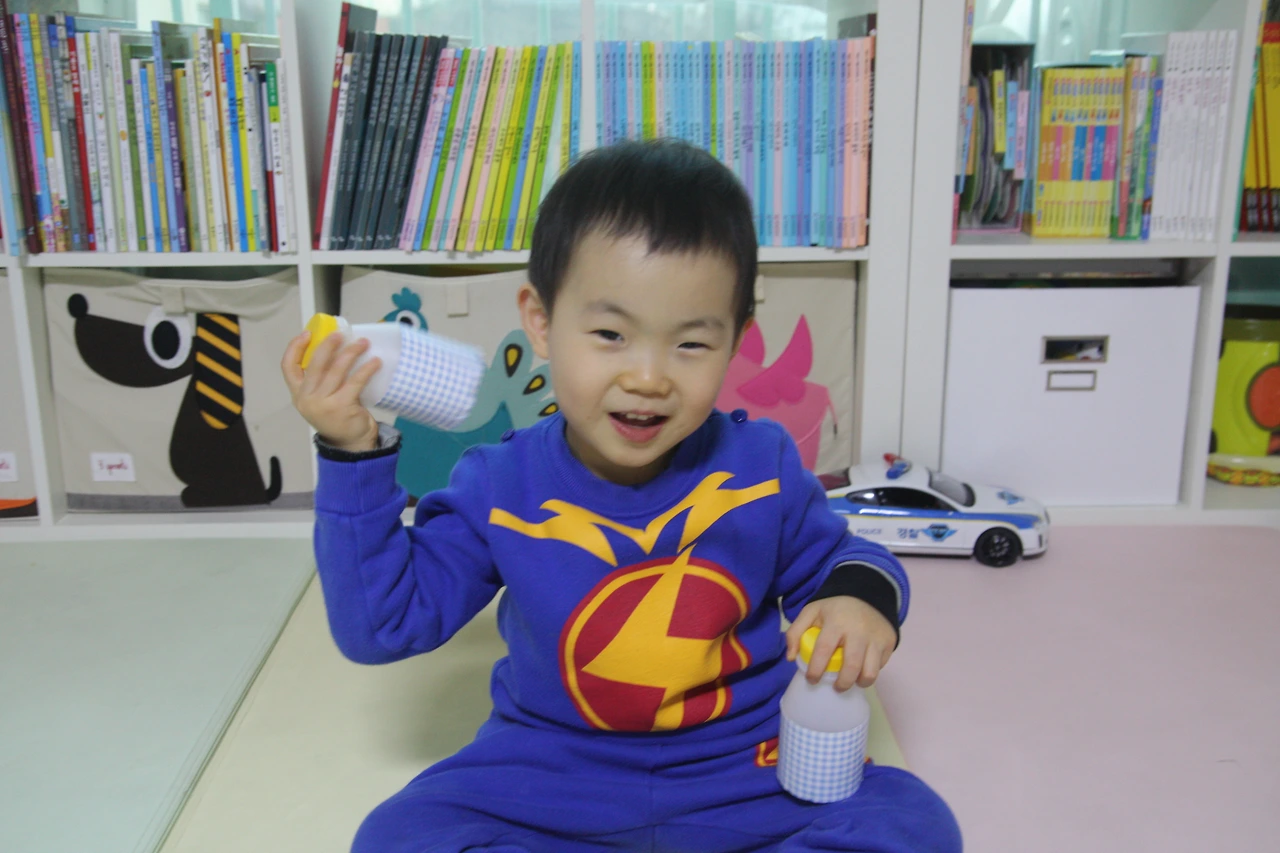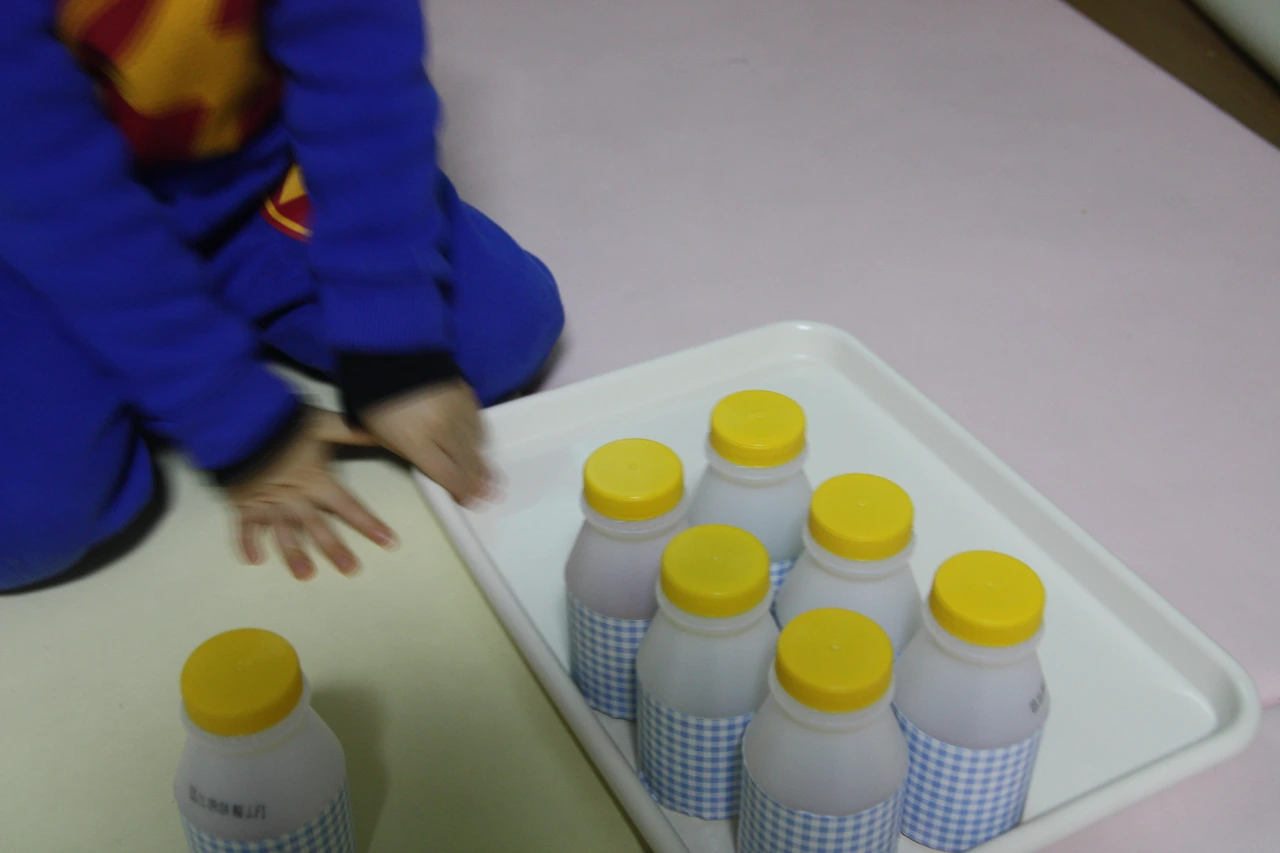 우유통 바닥의 빨간 스티커로 같은 소리 확인.