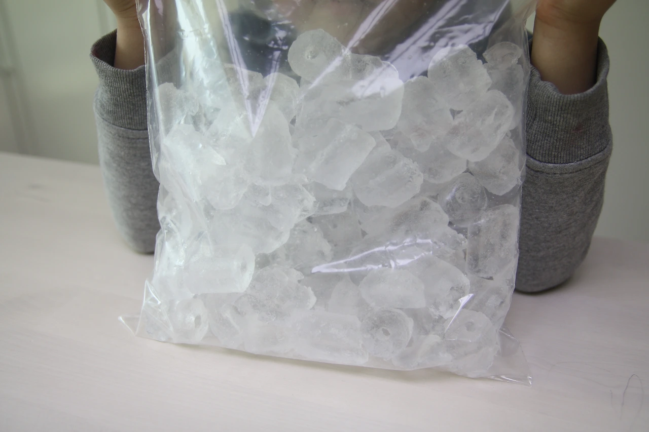 커다란 지퍼백에 #얼음 을 넉넉히 넣습니다.