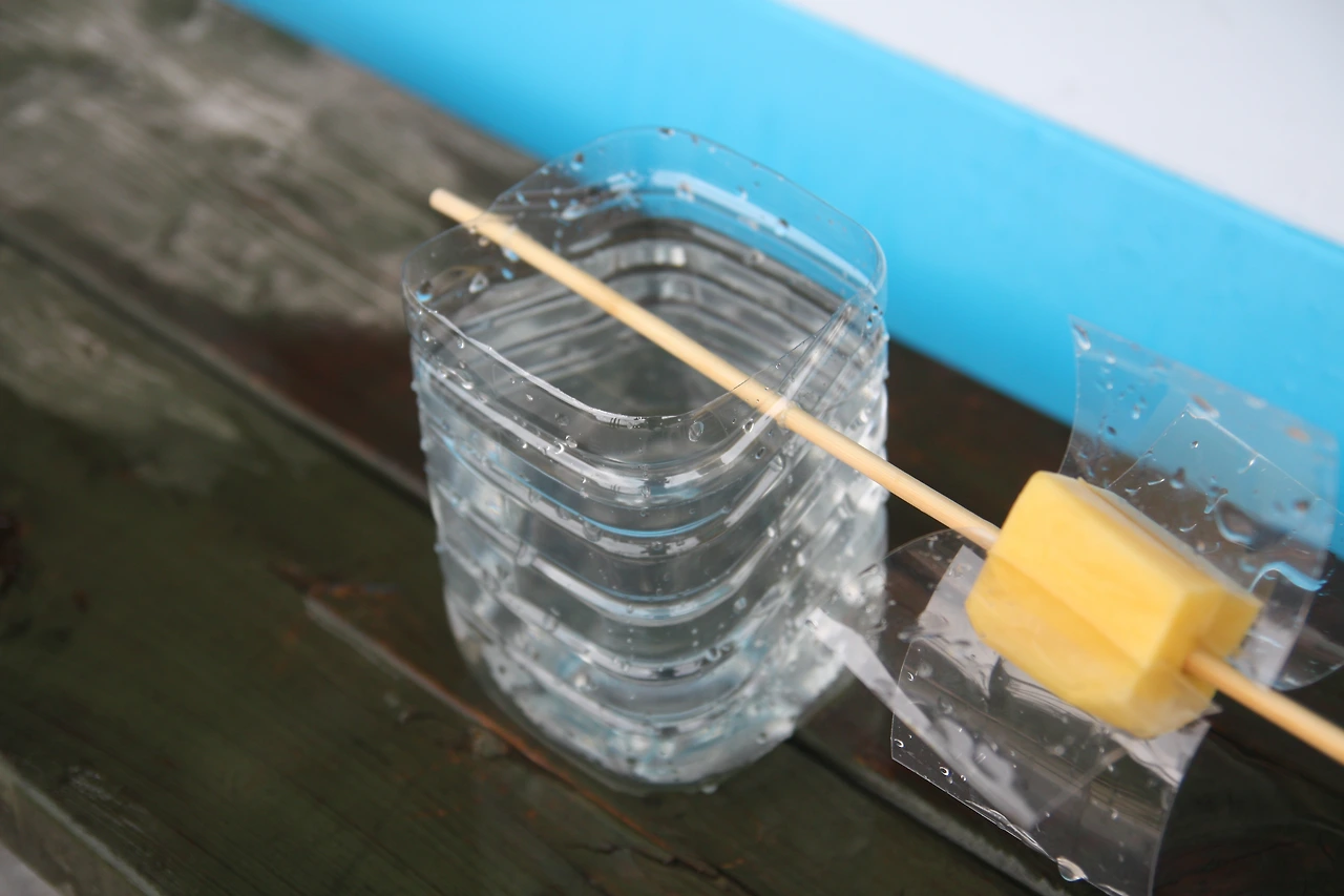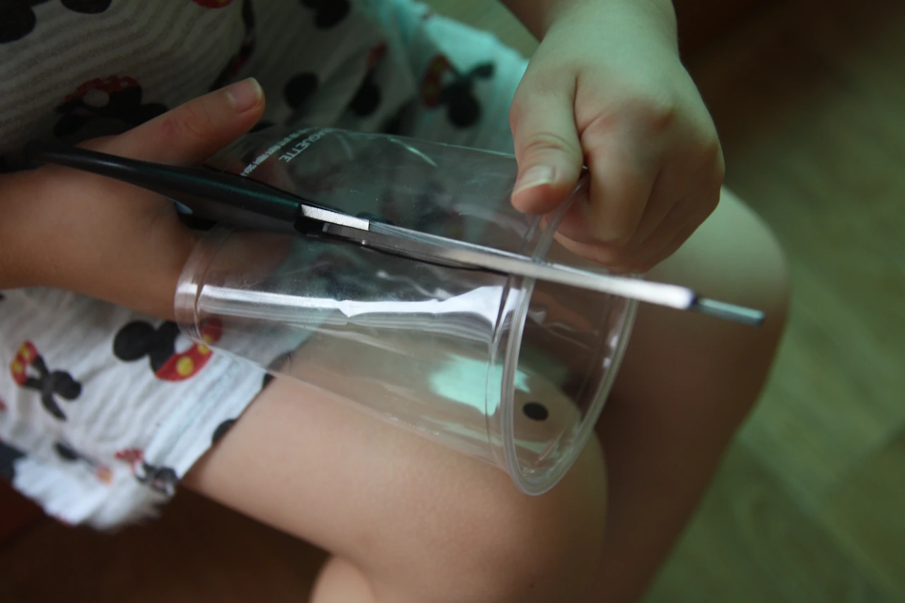 일회용 플라스틱컵의 바닥을 잘라낸 후,