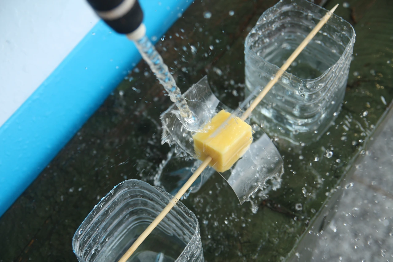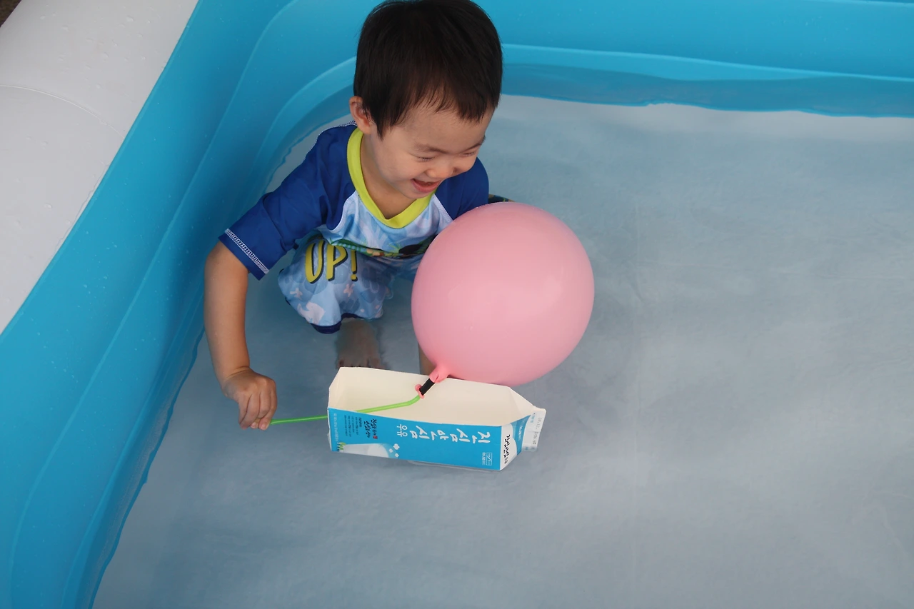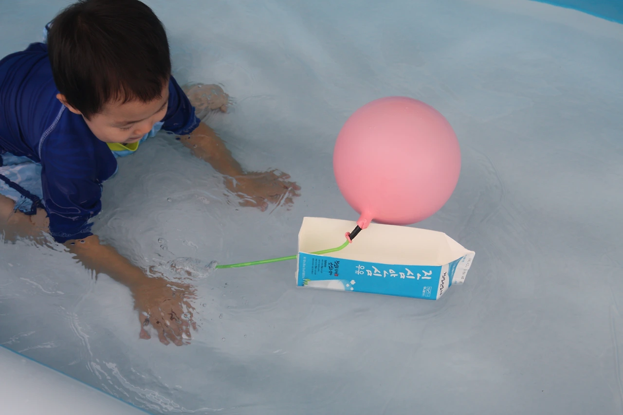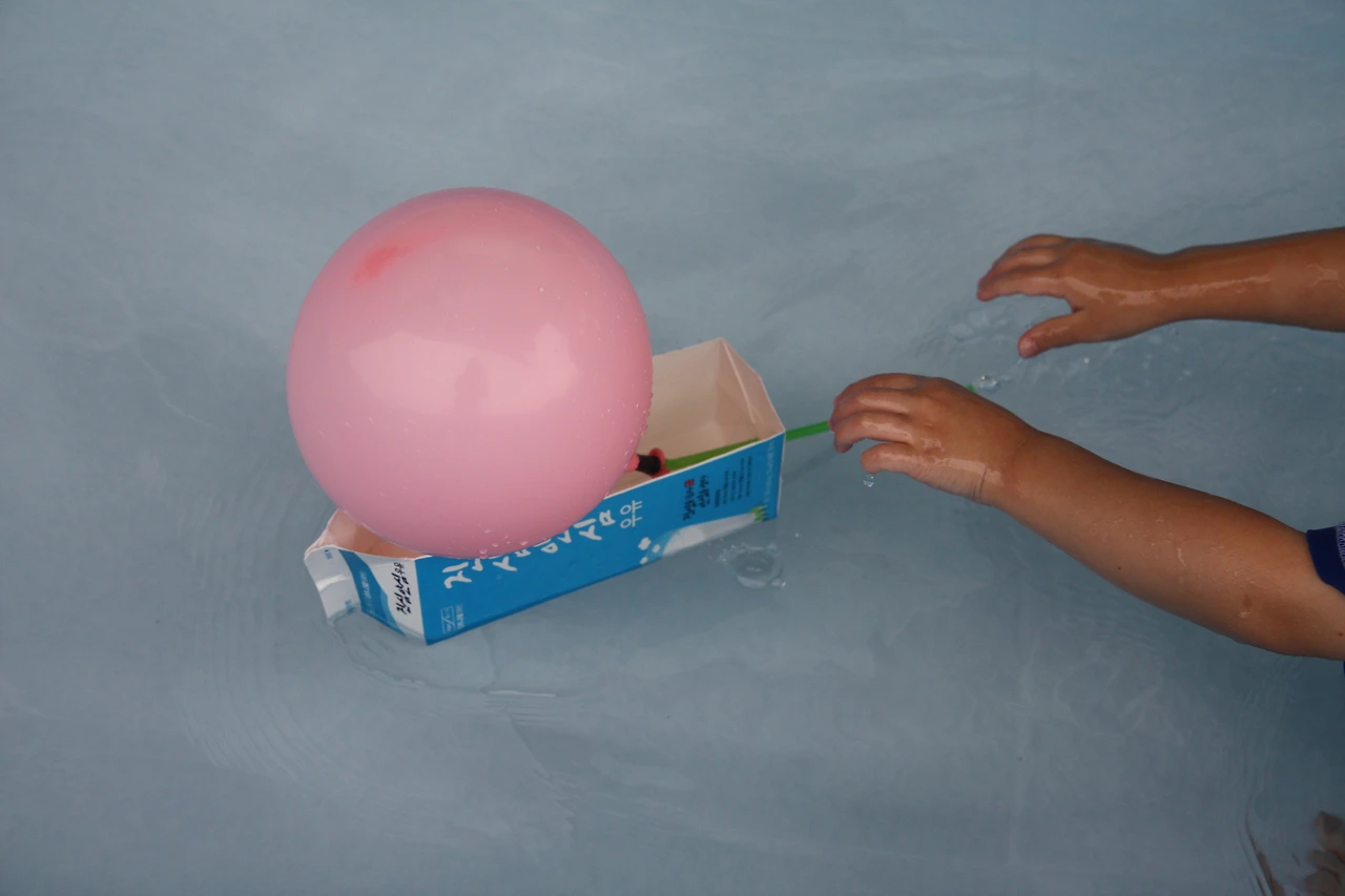 물 위에서 움직이는 #풍선배 자동차를 만들 수 있어요.