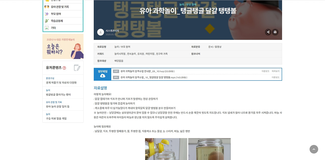 제가 제작한 유아 과학놀이 원격수업이 2개 올라가 있어요~
