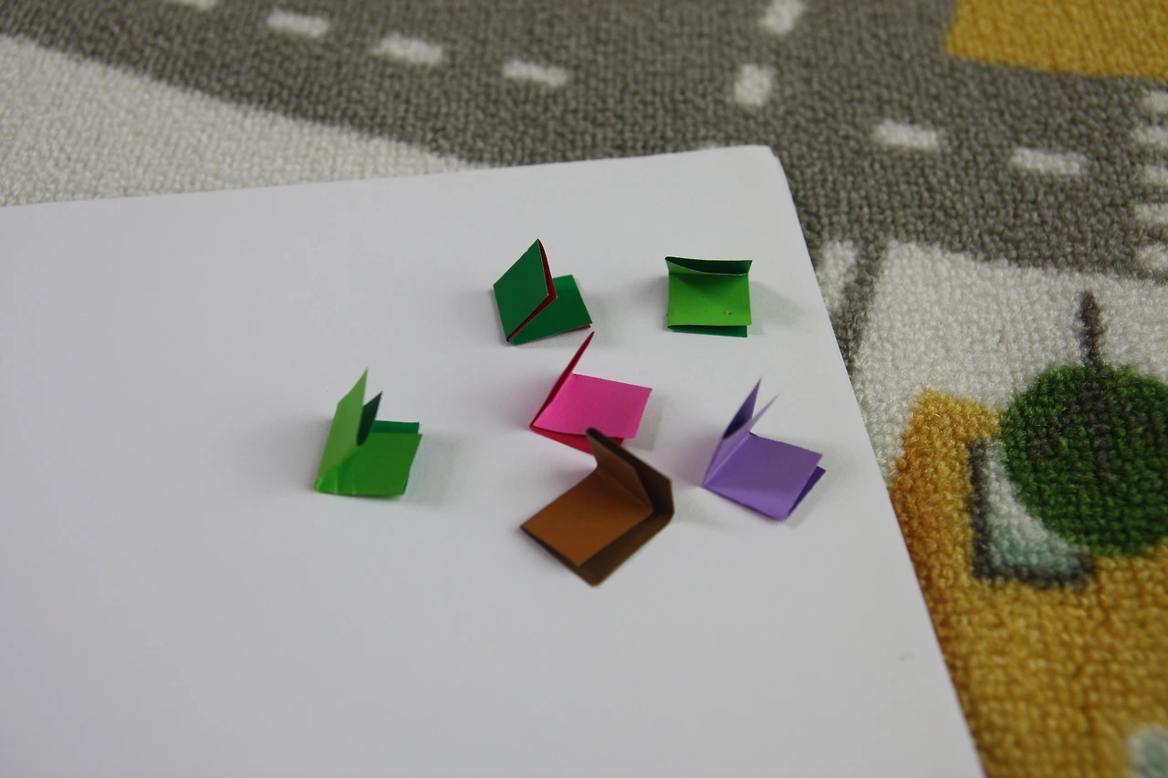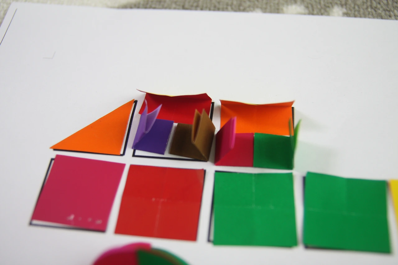 이번에는 네모 모양 색종이도 접어서 붙입니다.