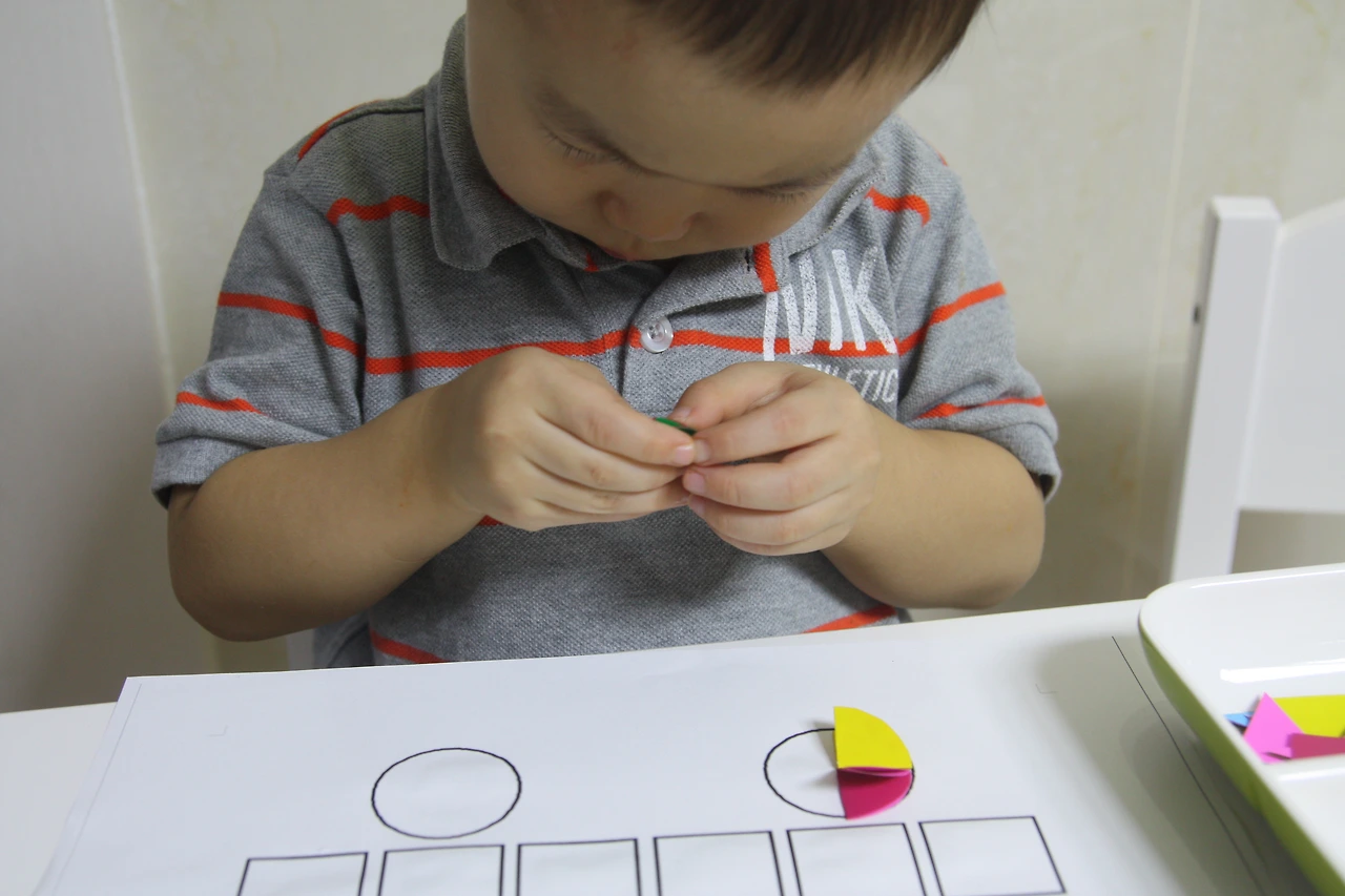 동그라미 색종이 반으로 접은 것 두 개를 같이 붙이네요~