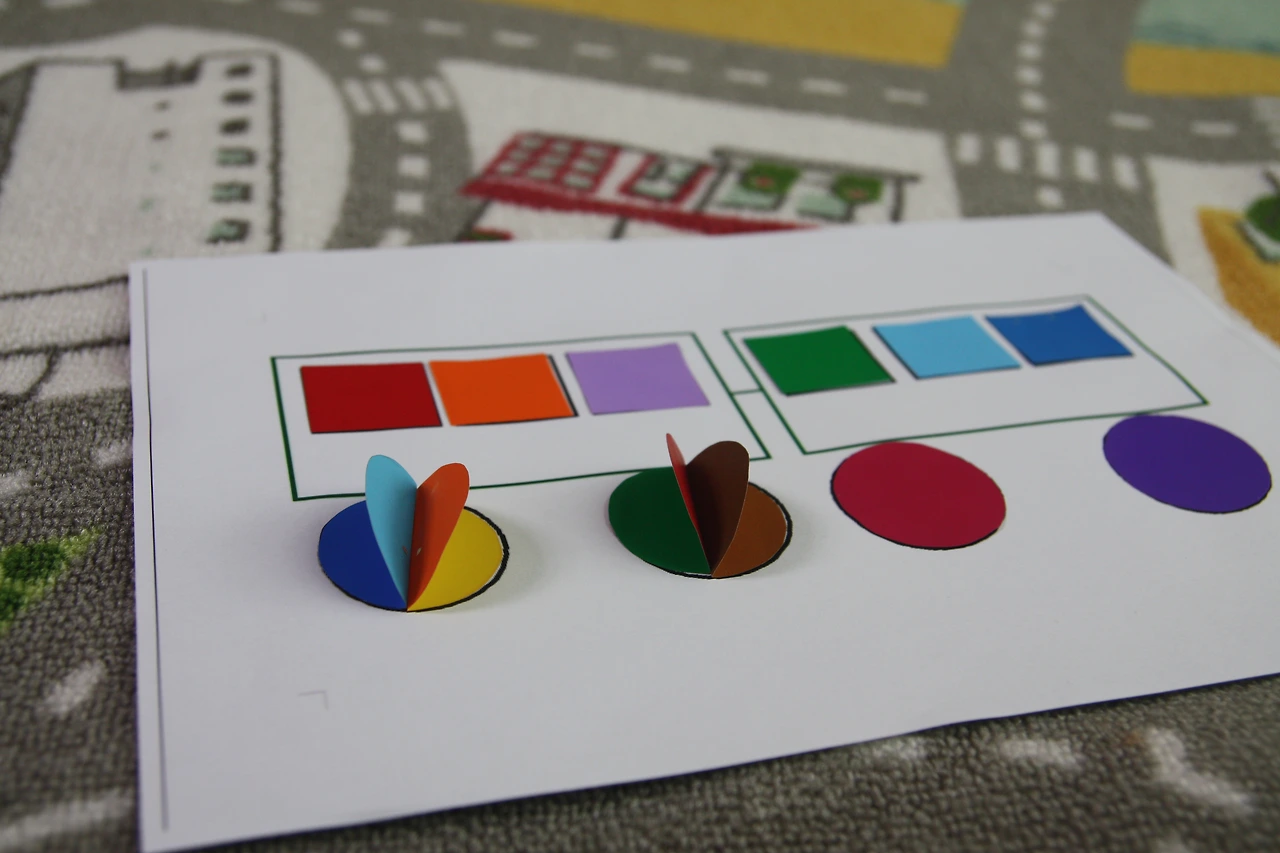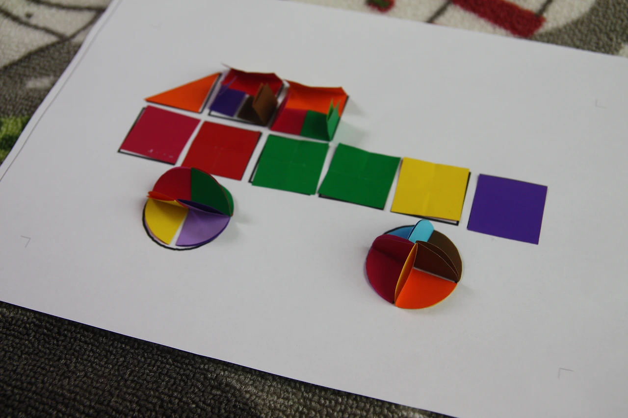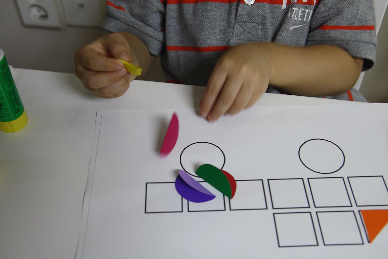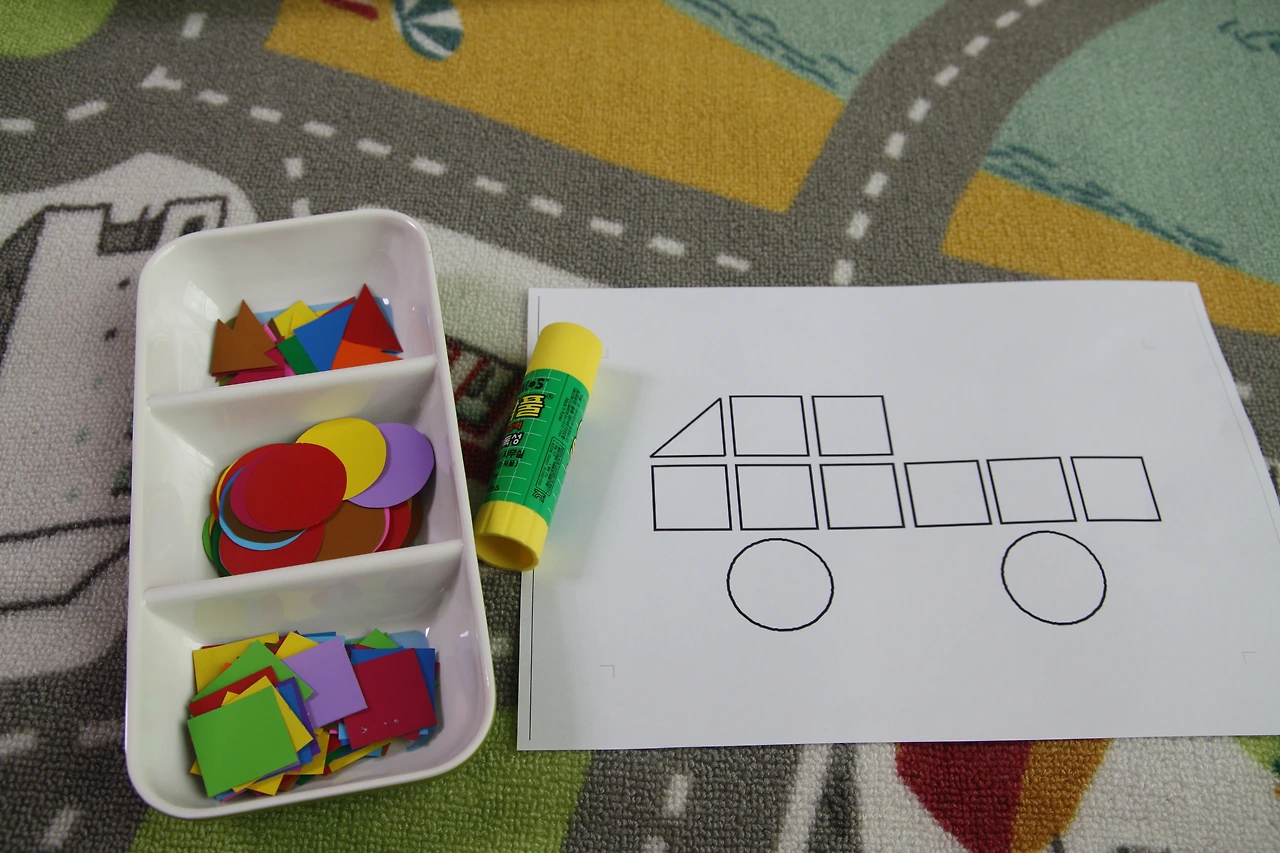 - 동그라미, 세모, 네모 모양의 색종이로 교통기관을 구성할 수 있다.