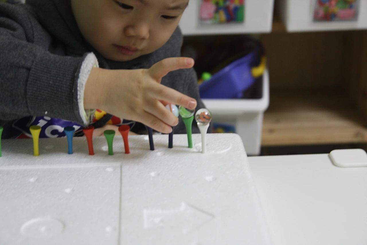 골프티를 한 줄로 꽂는 것이 아이가 놀이하기 쉬워요~