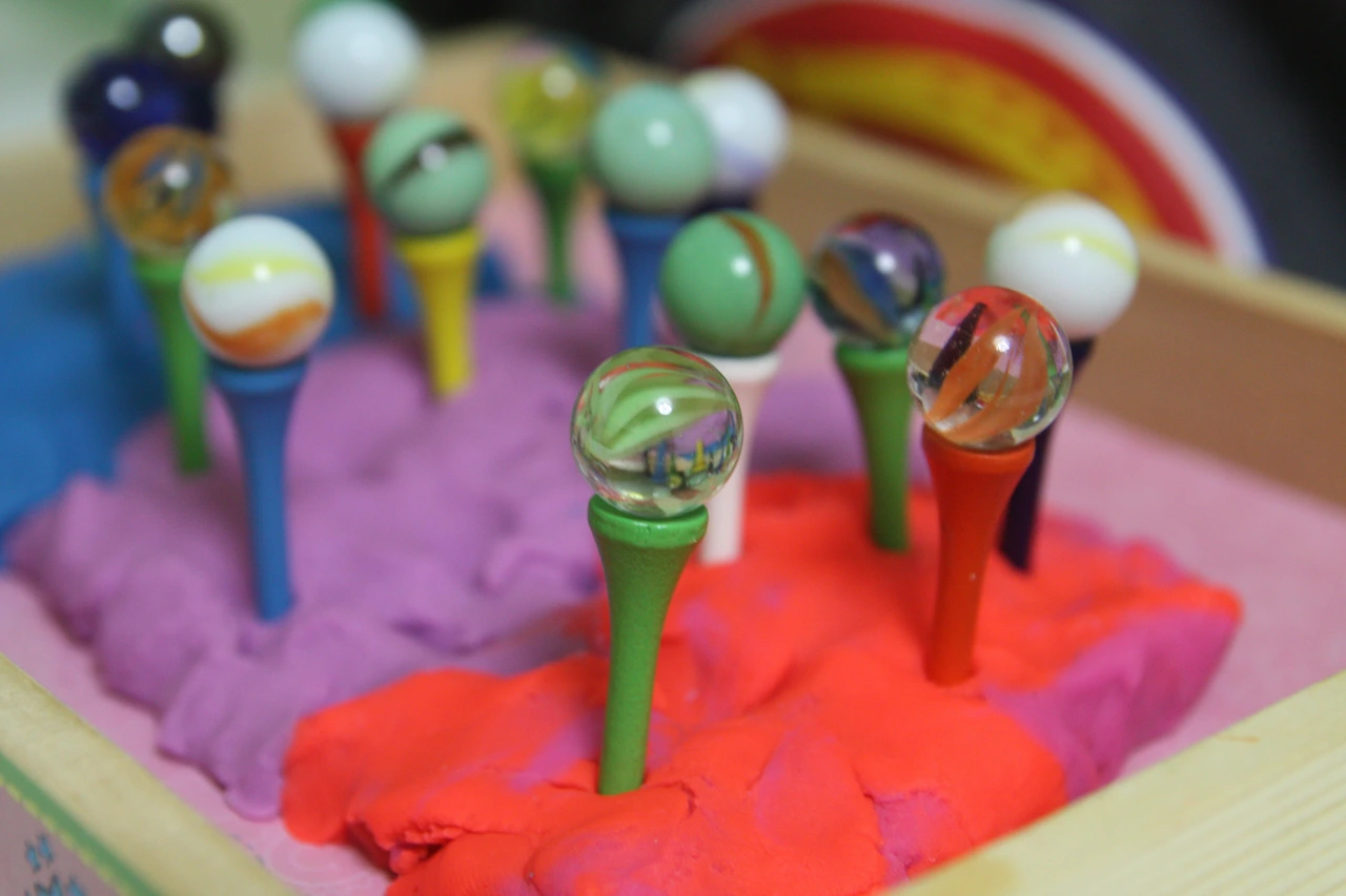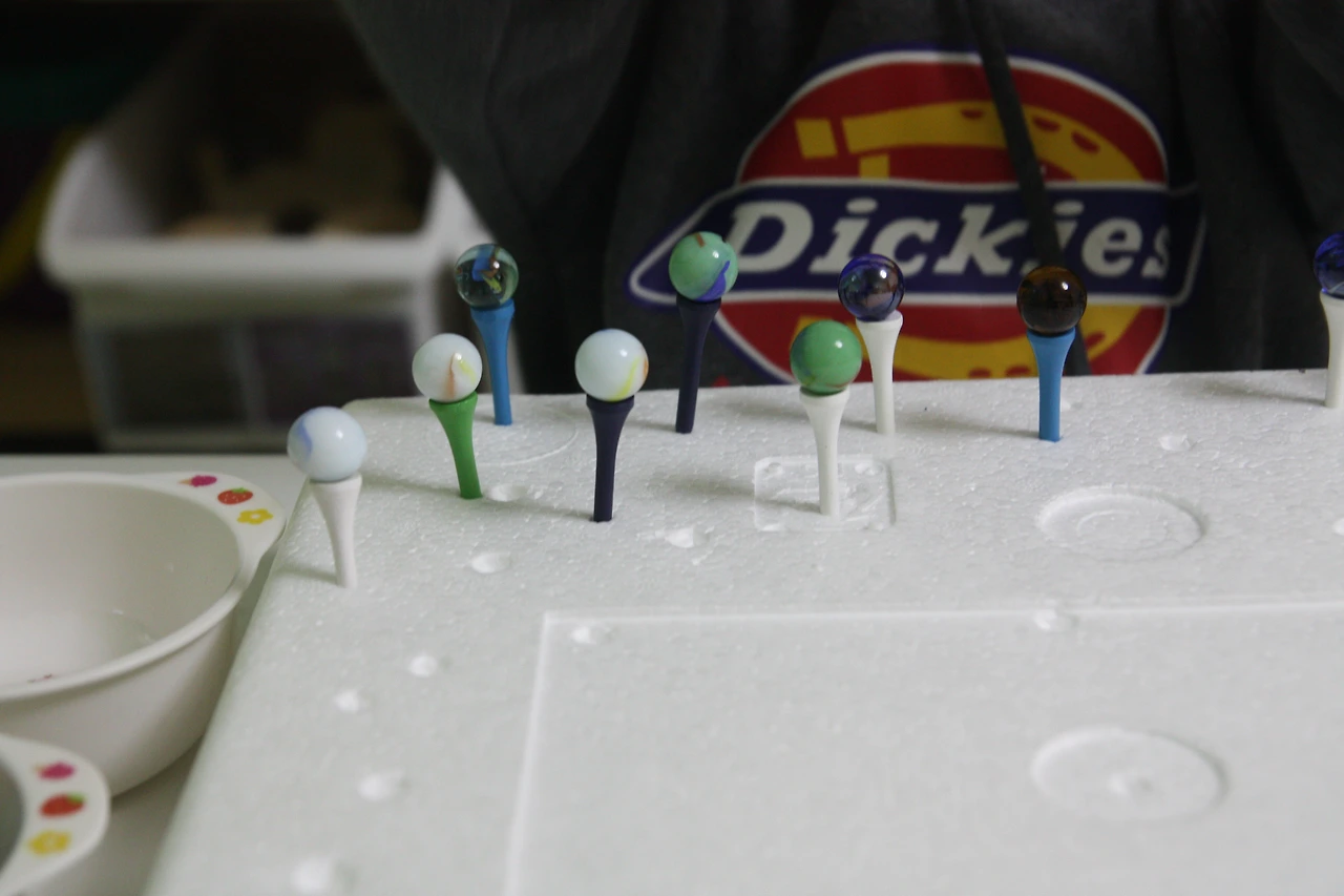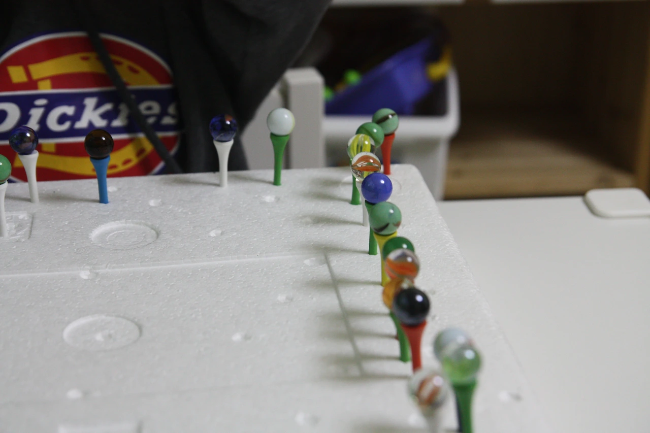 뒷 줄에 있는 골프티에 구슬 올리다가 앞줄 구슬을 건드리게 되거든요~