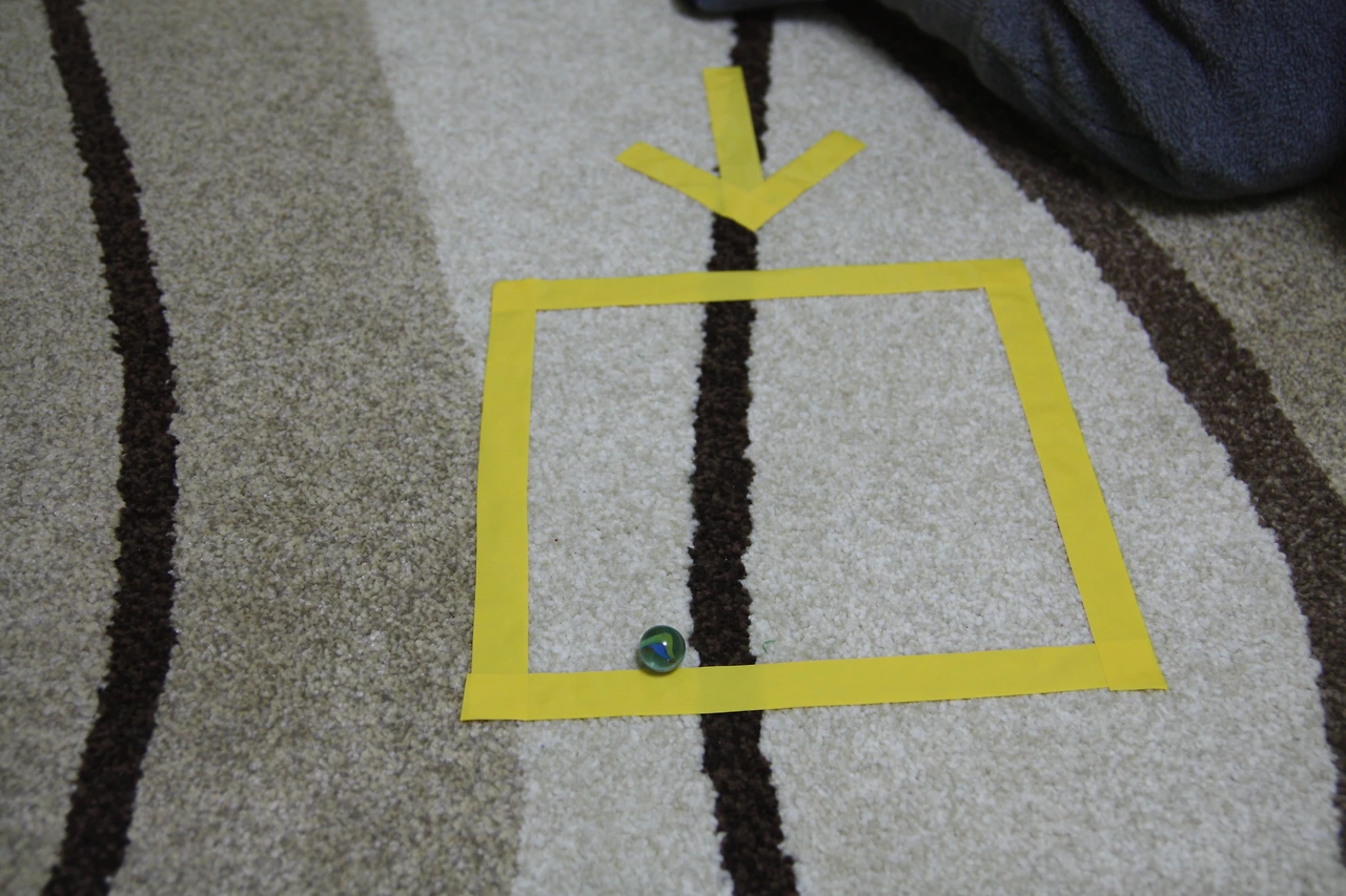 구슬을 굴려서 네모 안에 들어가게 하는 것인데