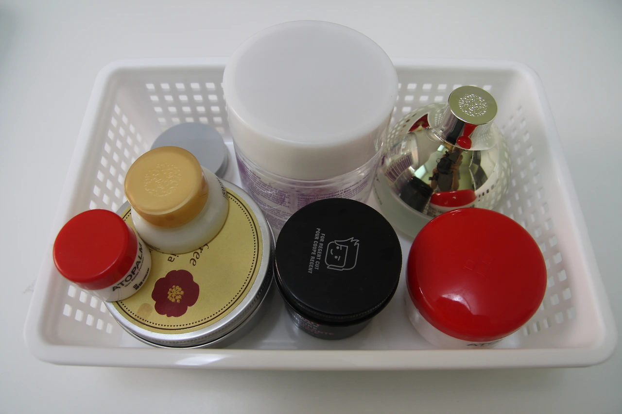 다양한 크기와 모양의 통을 모아놓고 보니 화장품 용기가 가장 많네요.