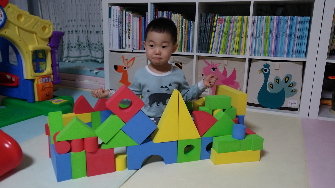 엄마 : "ㅁ모양은 많이 만들어봤는데 ㅂ모양은 처음이네~ 멋진 집이 될 것 같아~"
