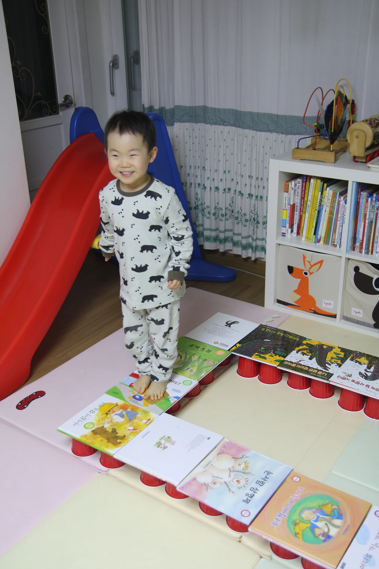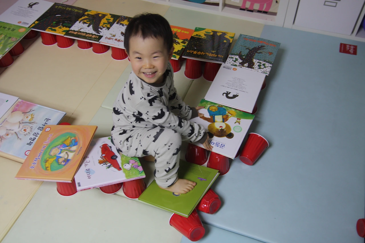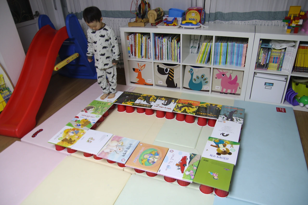 종이컵과 동화책으로 다리 만들어서 건너기입니다.