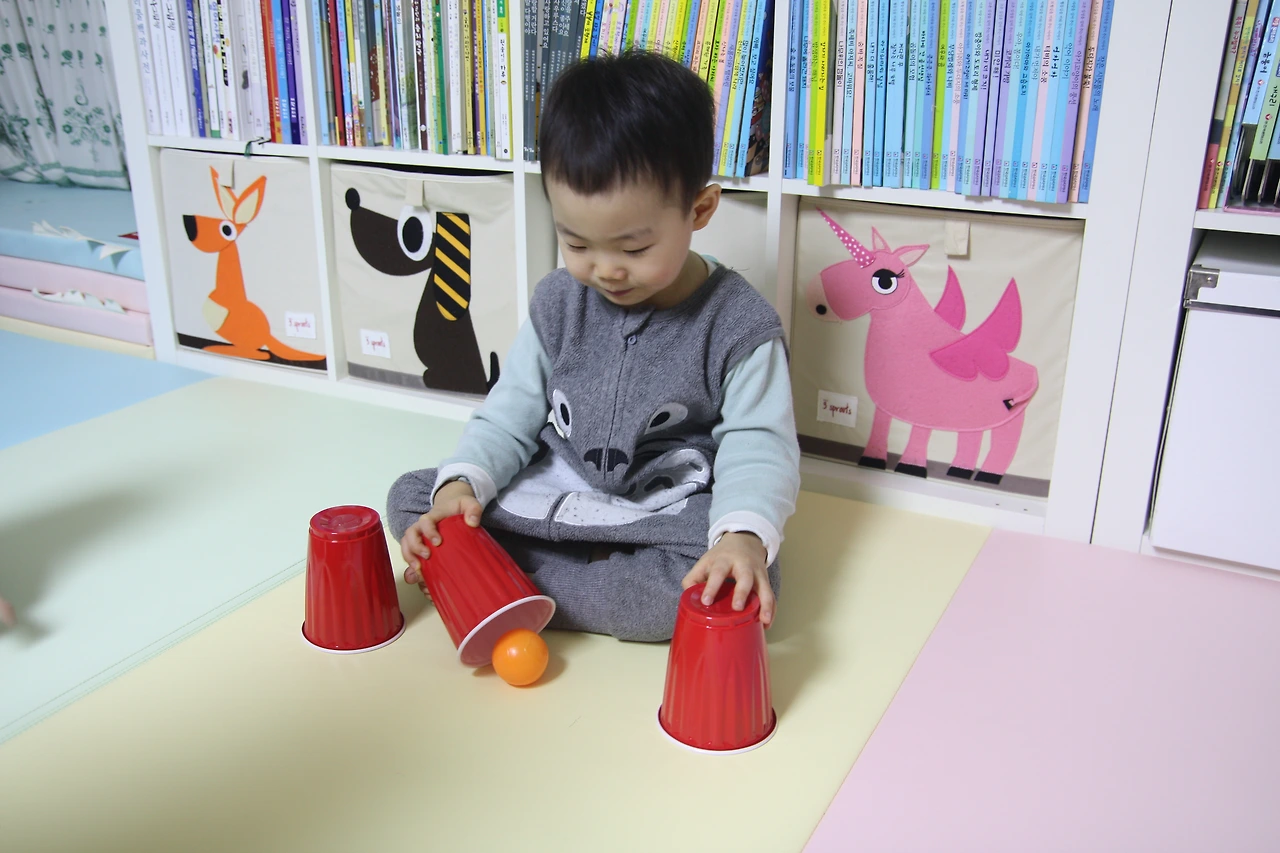 그런 후에 공이 들어있는 컵을 찾는 거예요~