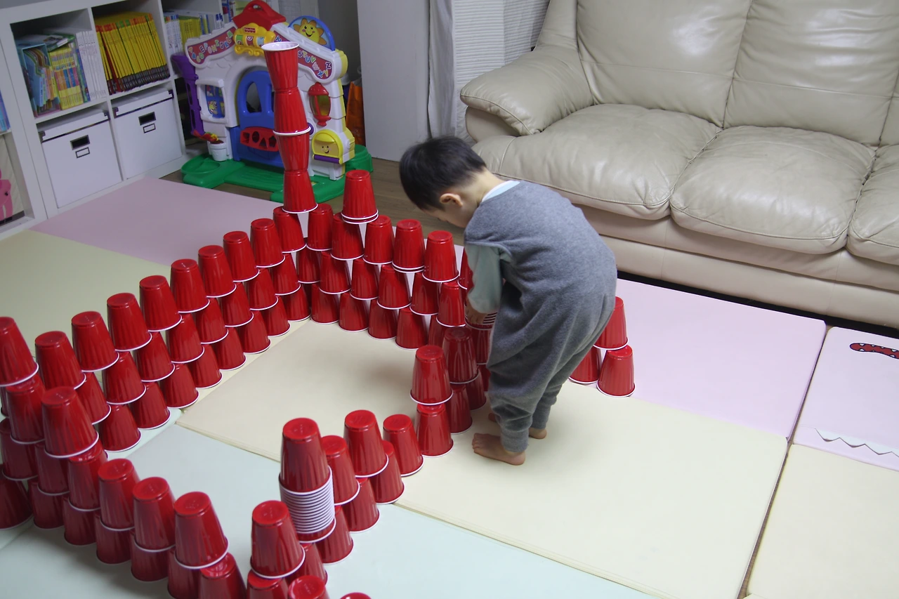컵 쌓기의 묘미는 바로 무너뜨리기 아니겠어요?!