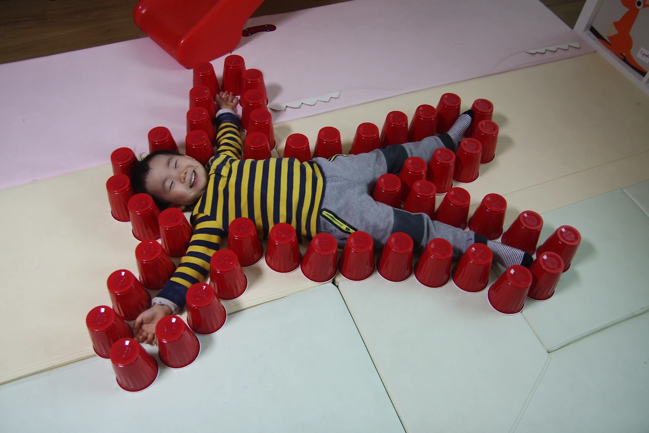 이밖에도 종이컵 한 줄로 쌓은 것을 바닥에 눕히고 김밥 말듯이 종이컵 굴리기도 해보고