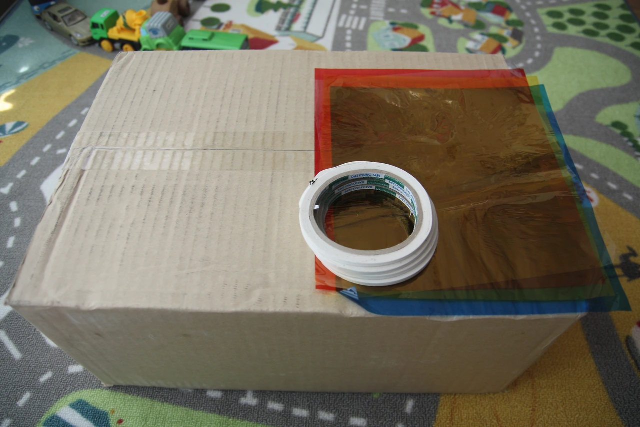 여기에 빨간색, 노란색, 파란색의 셀로판지를