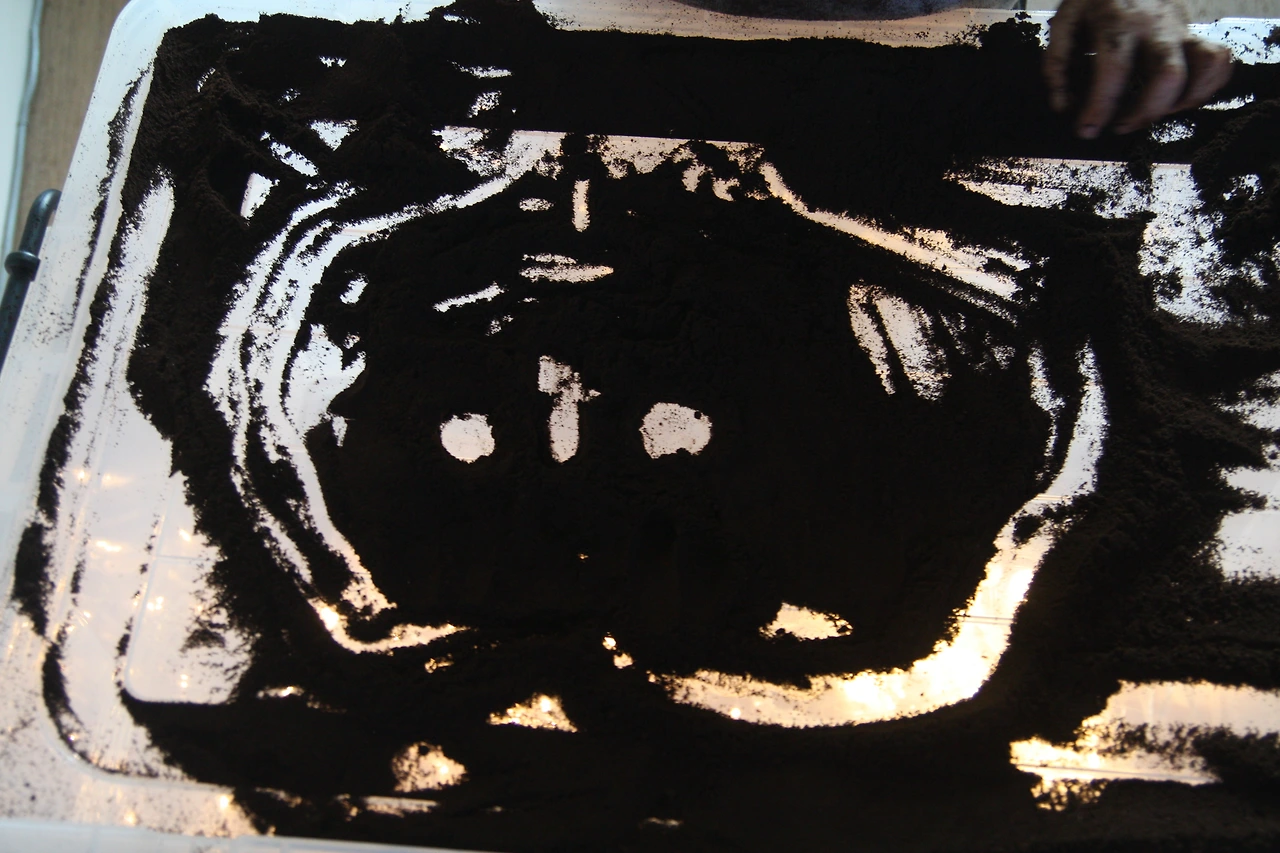 집에 오자마자 다시 커피가루를 쏟아내고 그림 그리기를 했어요.