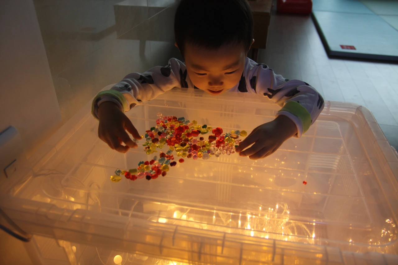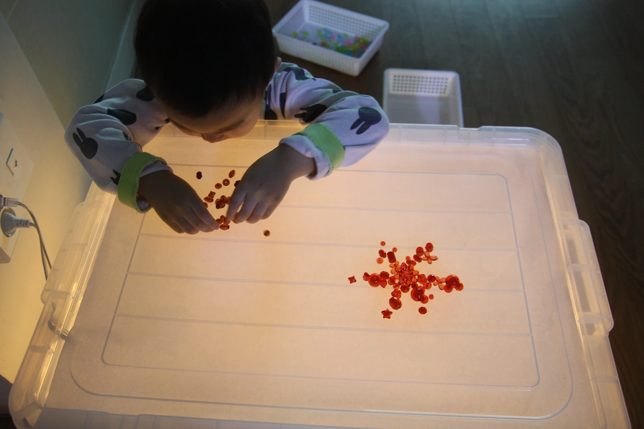 엄마표로 라이팅 박스 만들어서 놀이해보았어요.