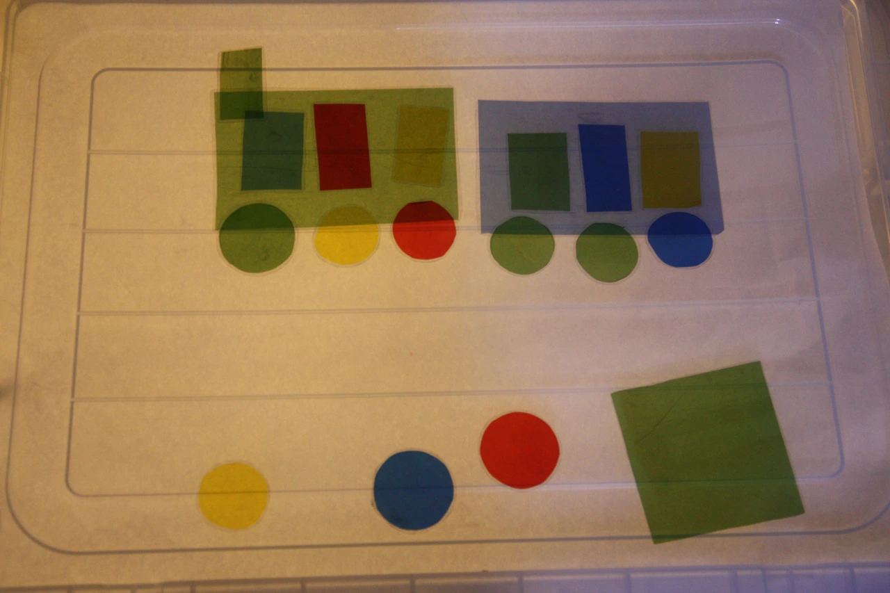 - 셀로판지로 만든 기본 도형(원, 삼각형, 정사각형, 직사각형, 이등변 사각형, 육각형, 반원 등)