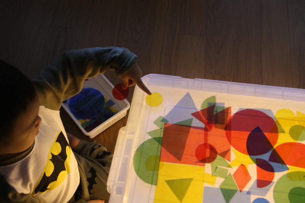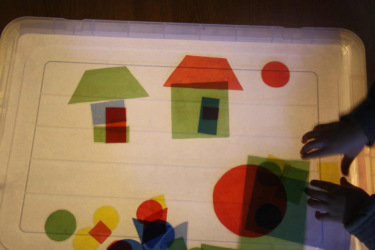 셀로판지로 만든 도형들을 탐색해보고