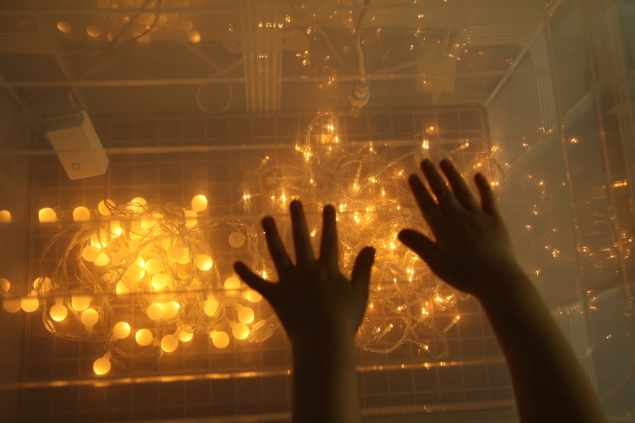 플라스틱 리빙박스와 크리스마스 트리 전구로 만든