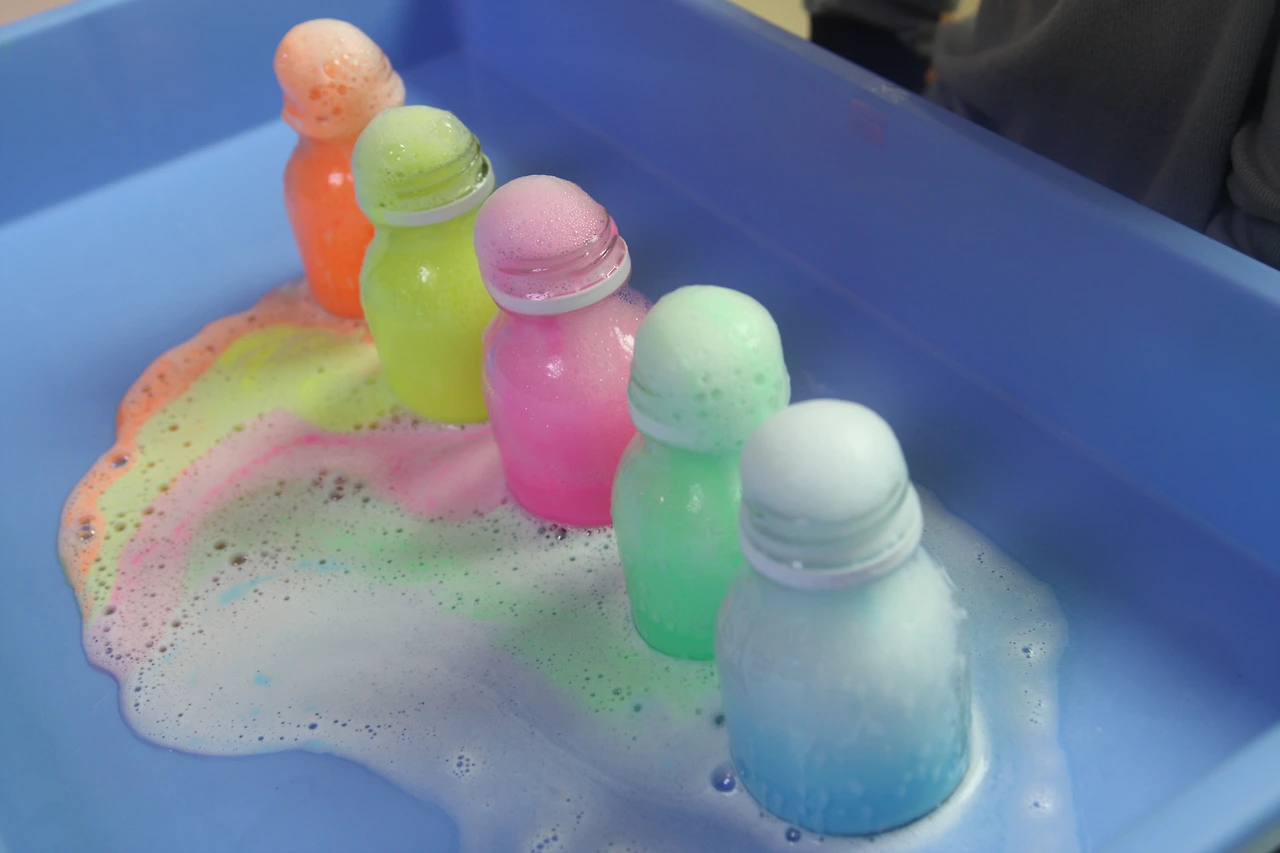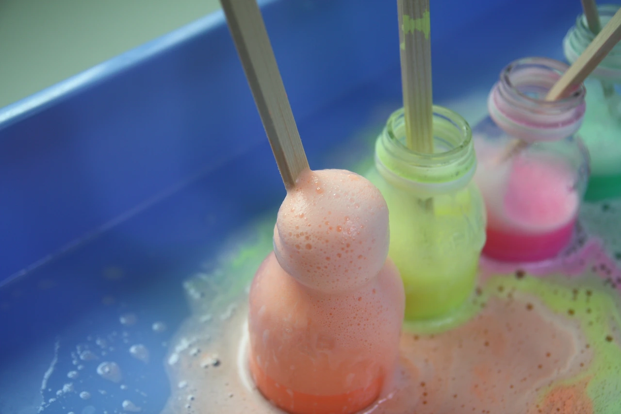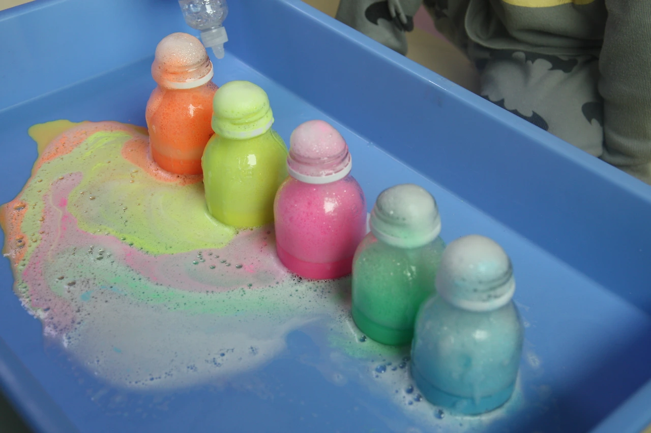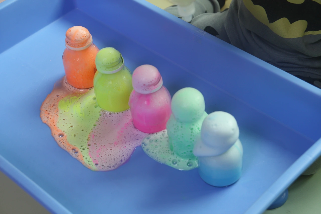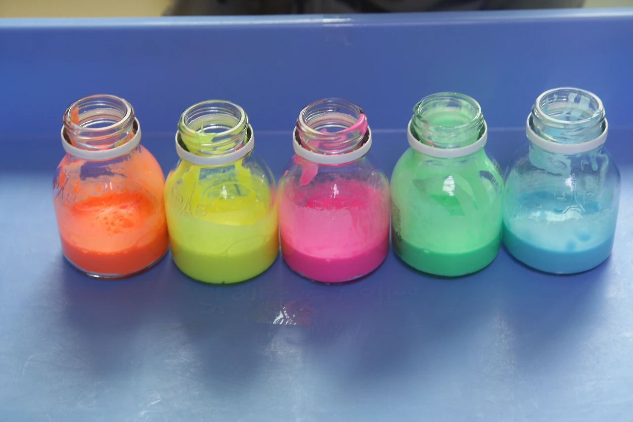 베이킹 소다와 물감, 주방세제가 골고루 섞이도록
