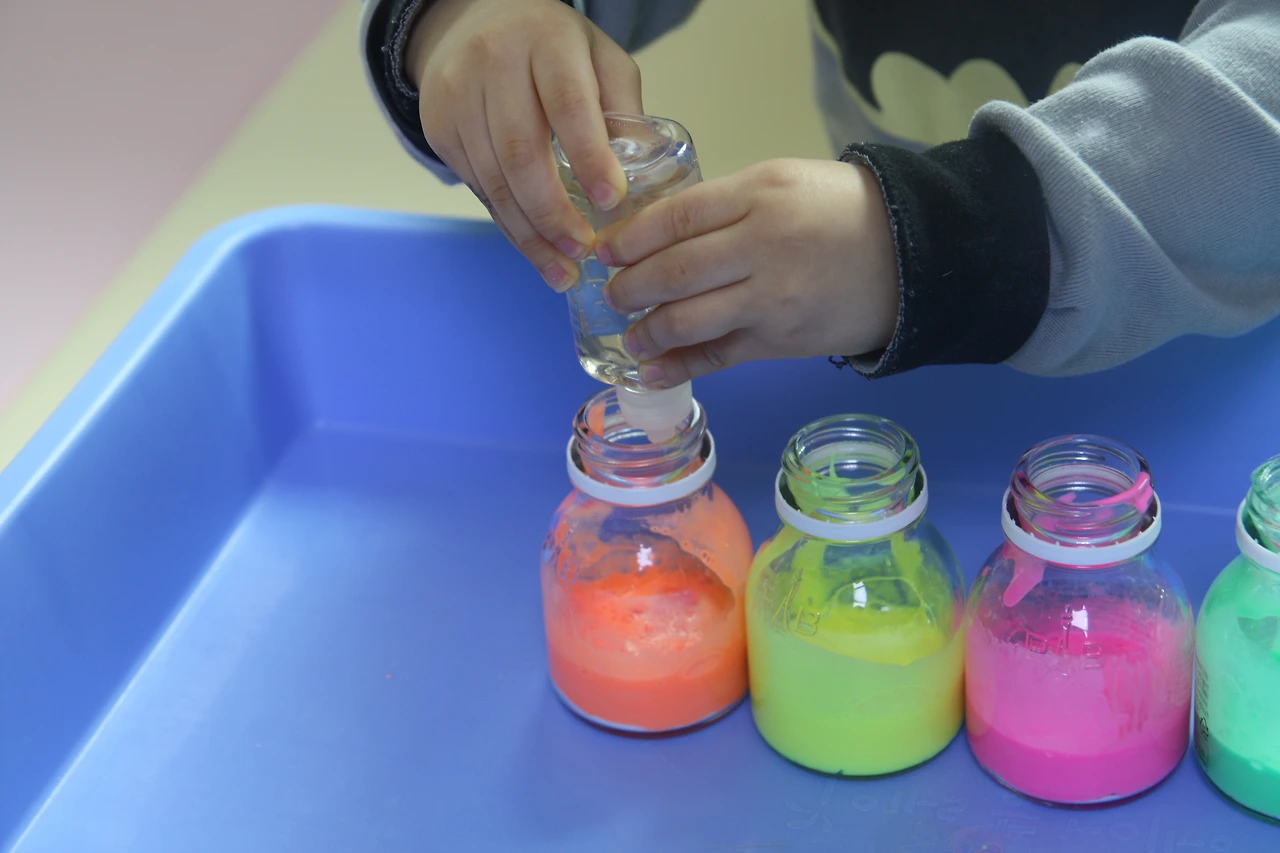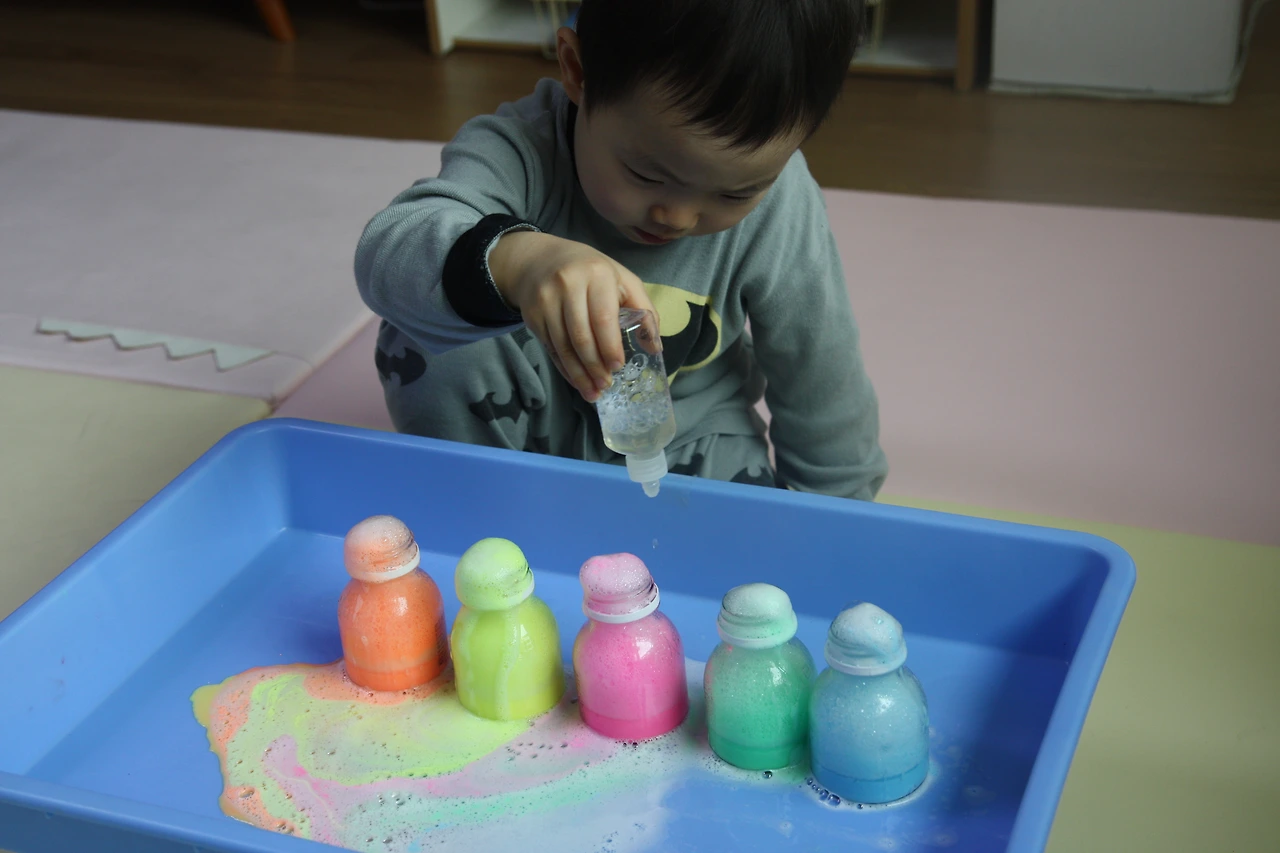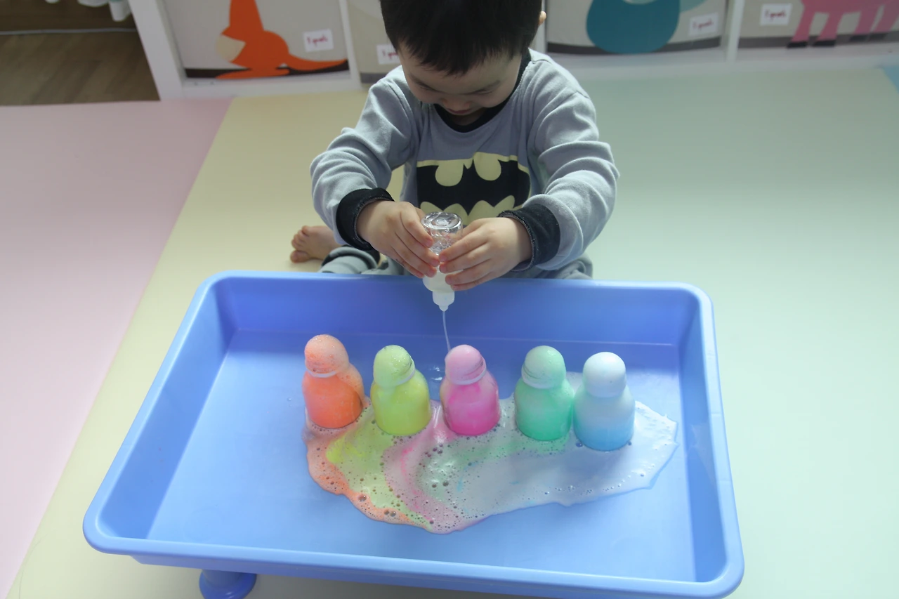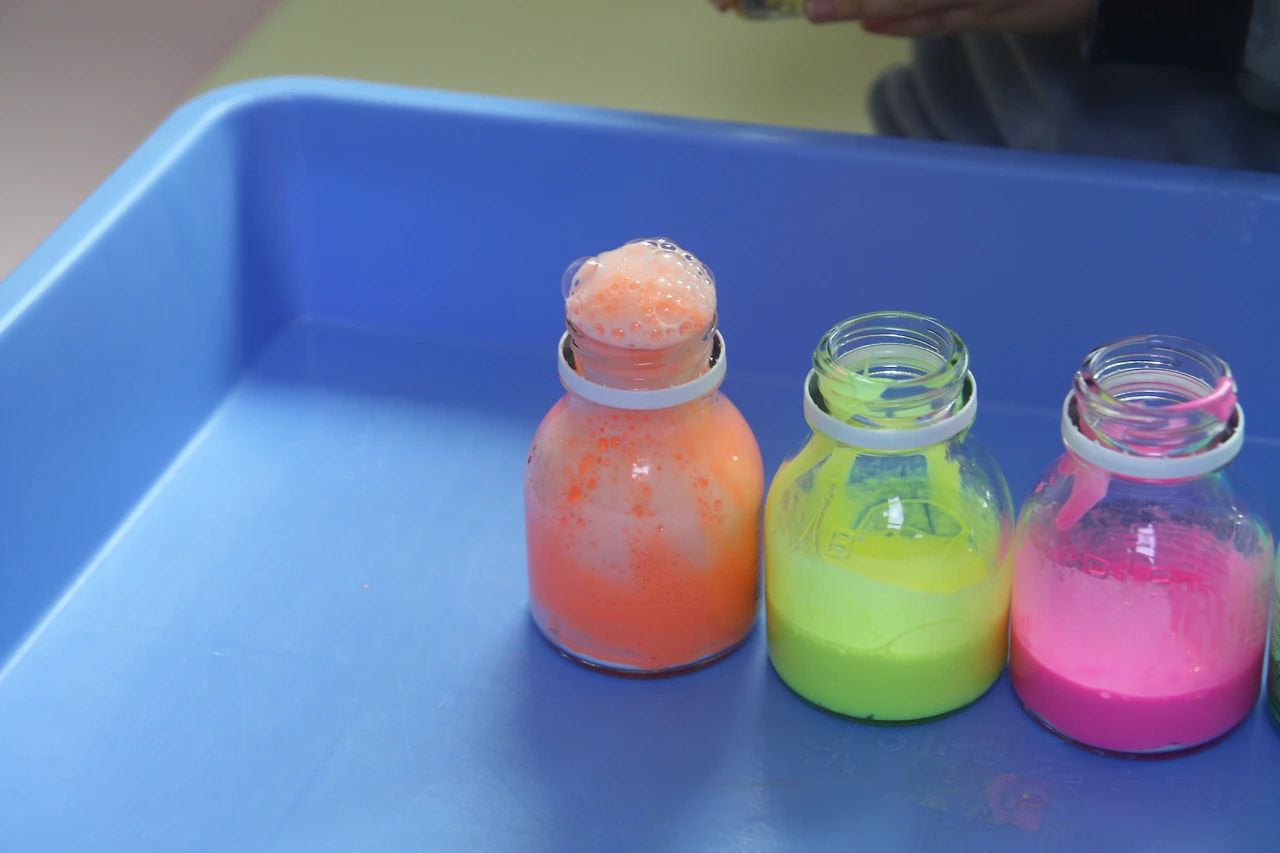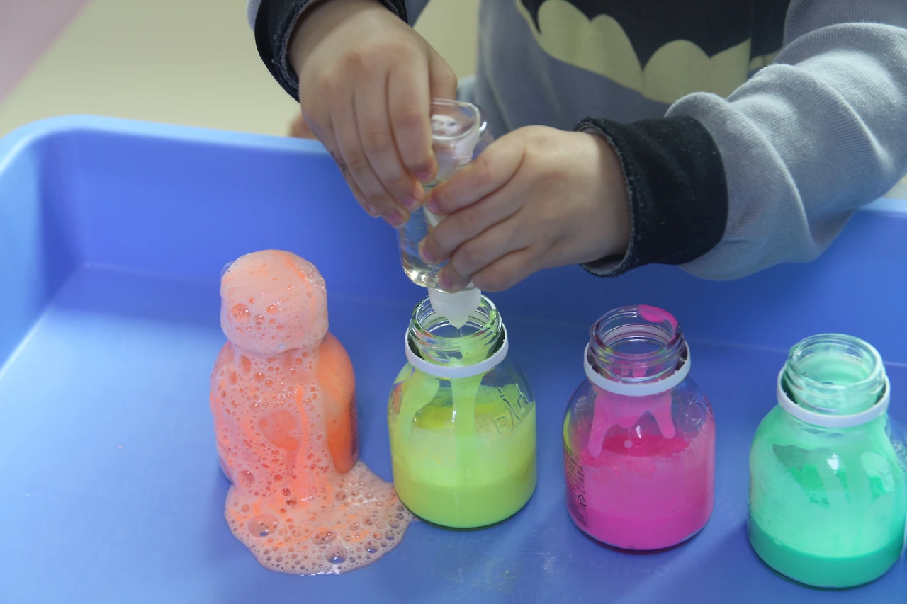 화산 폭발 과학놀이와 물감을 이용한 색혼합 놀이를