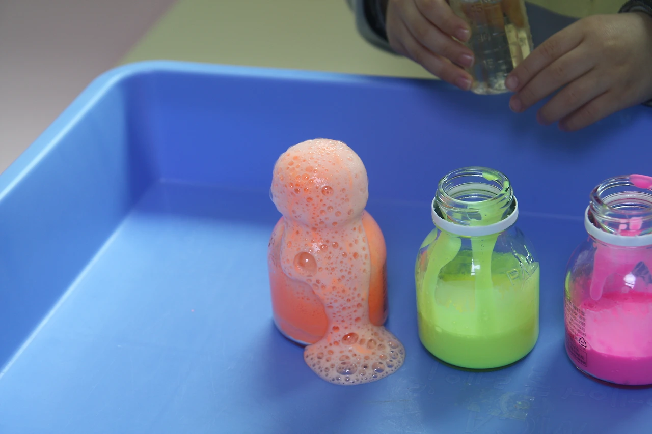 - 베이킹 소다와 식초를 이용한 화산 만들기 실험에 적극적으로 참여해본다.
