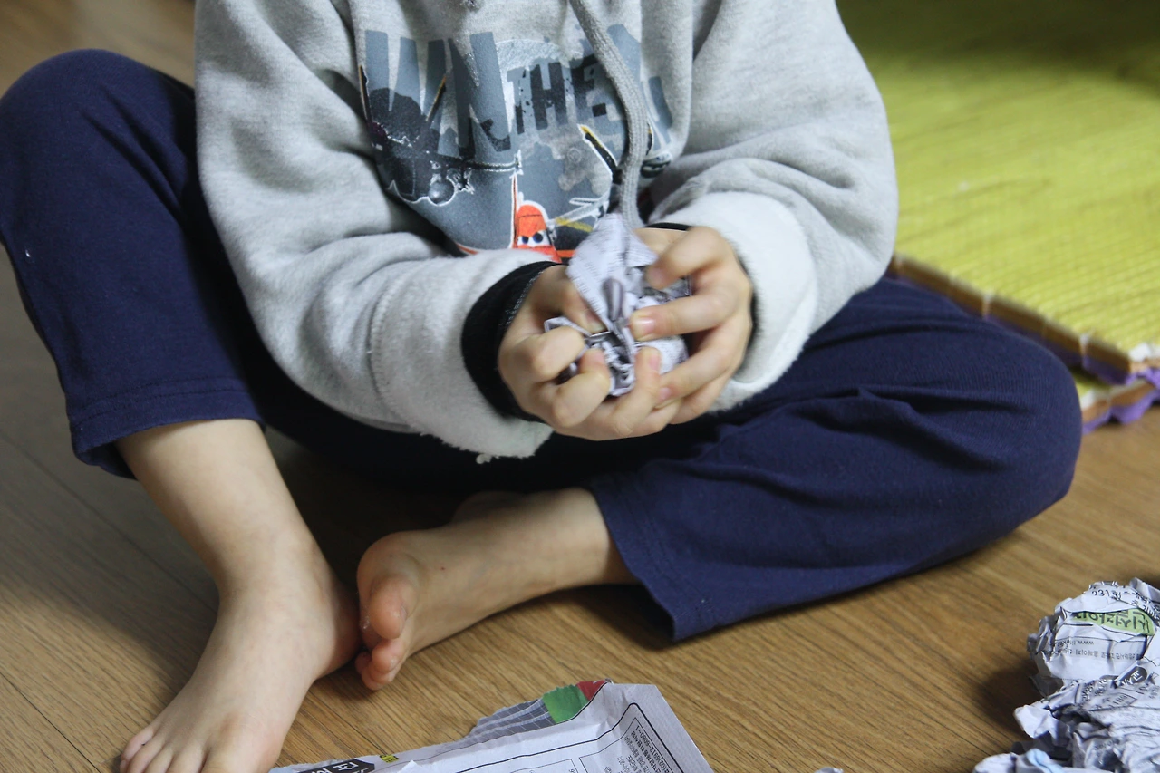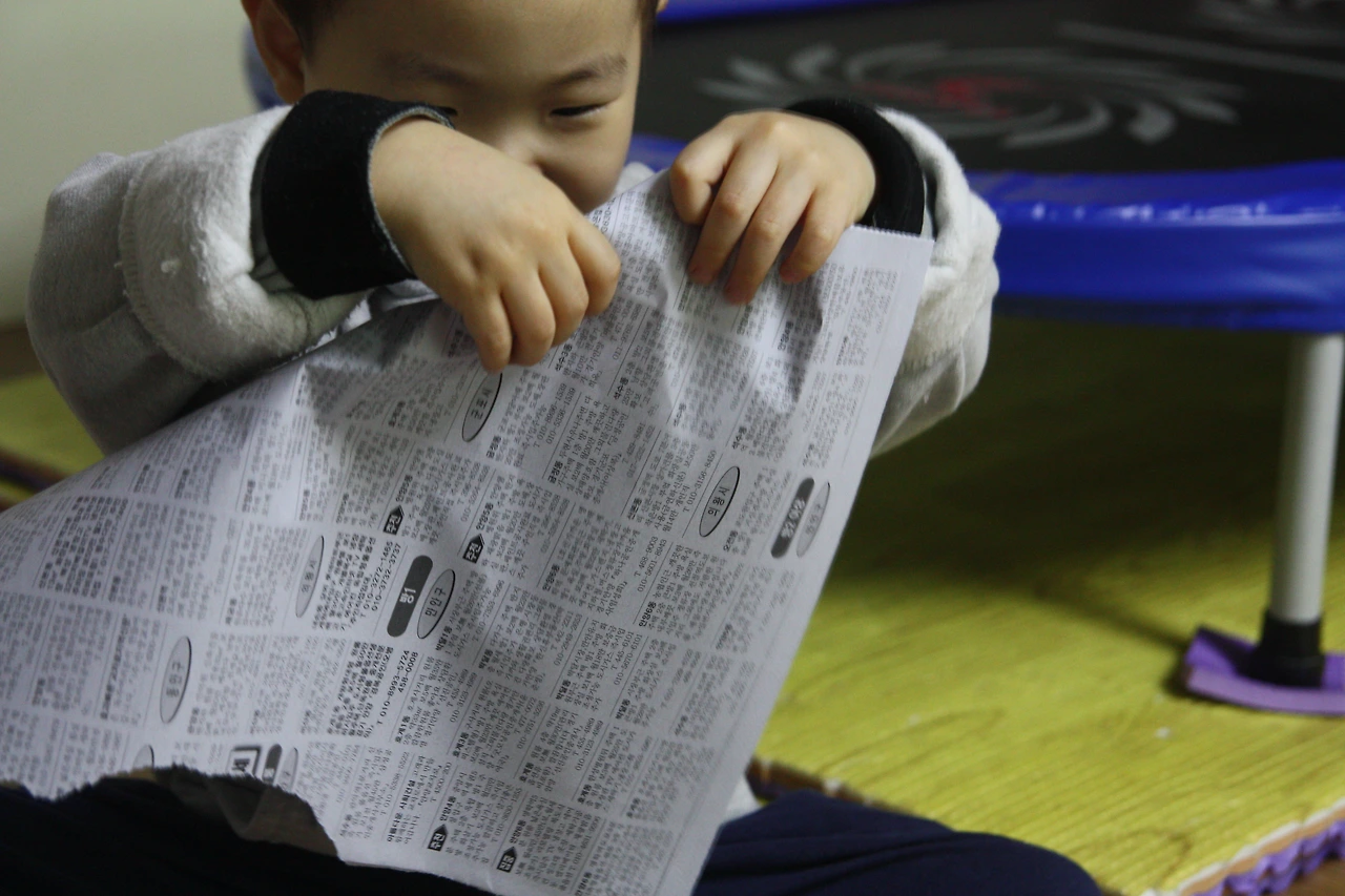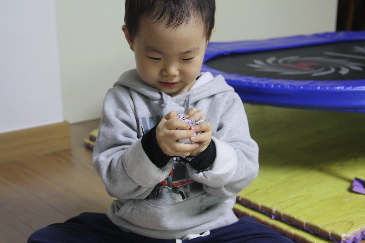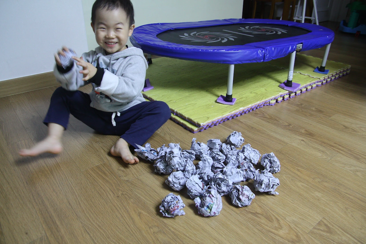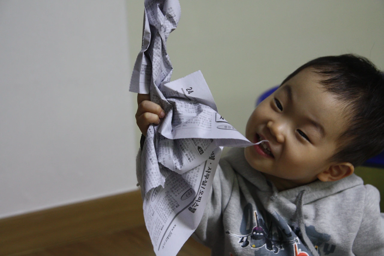 아이들은 신문지를 찢고 구기는 것 자체도 좋아해요.