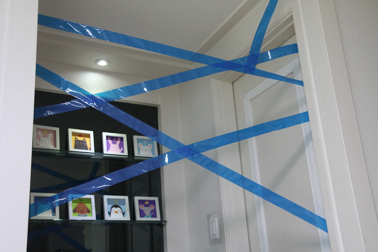스카치테이프를 몰딩과 몰딩 사이에 붙이기 위함이에요~~~~