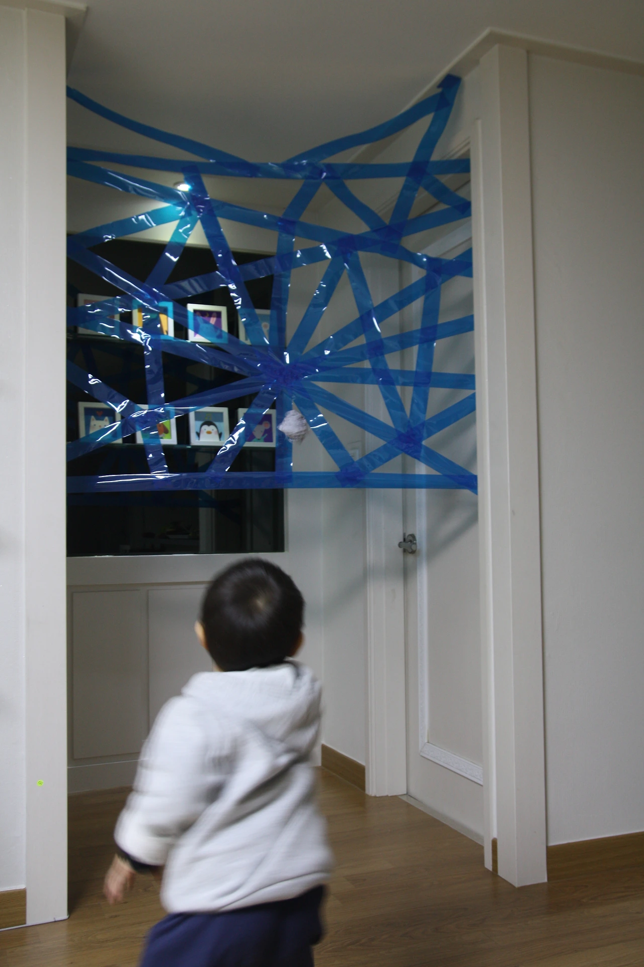 (더 아래까지 거미줄을 만들어주고는 싶지만 화장실을 가려면 지나갈 수 있는 약간의 공간이 필요했어요.)