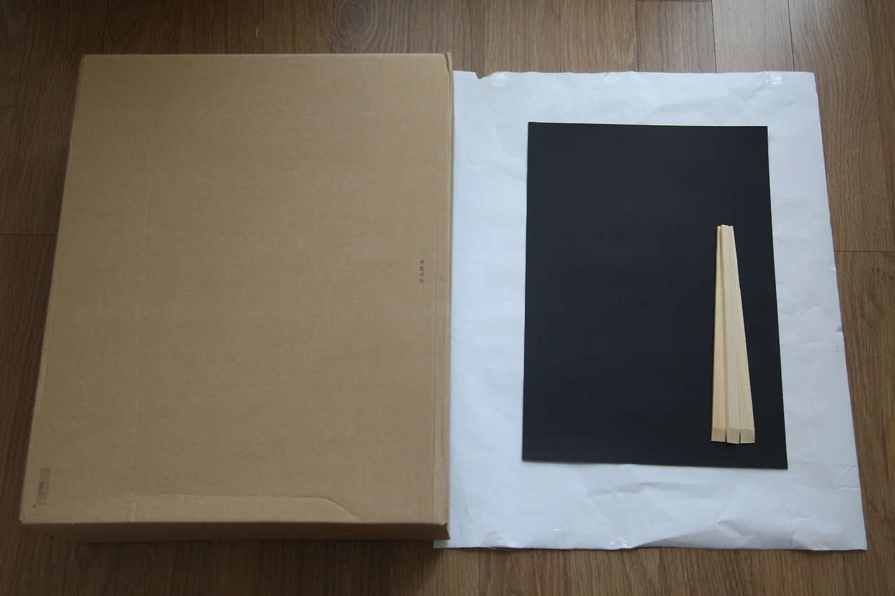 종이상자와 전지(얇은 흰색 종이), 검은색 종이, 나무젓가락이 필요해요.