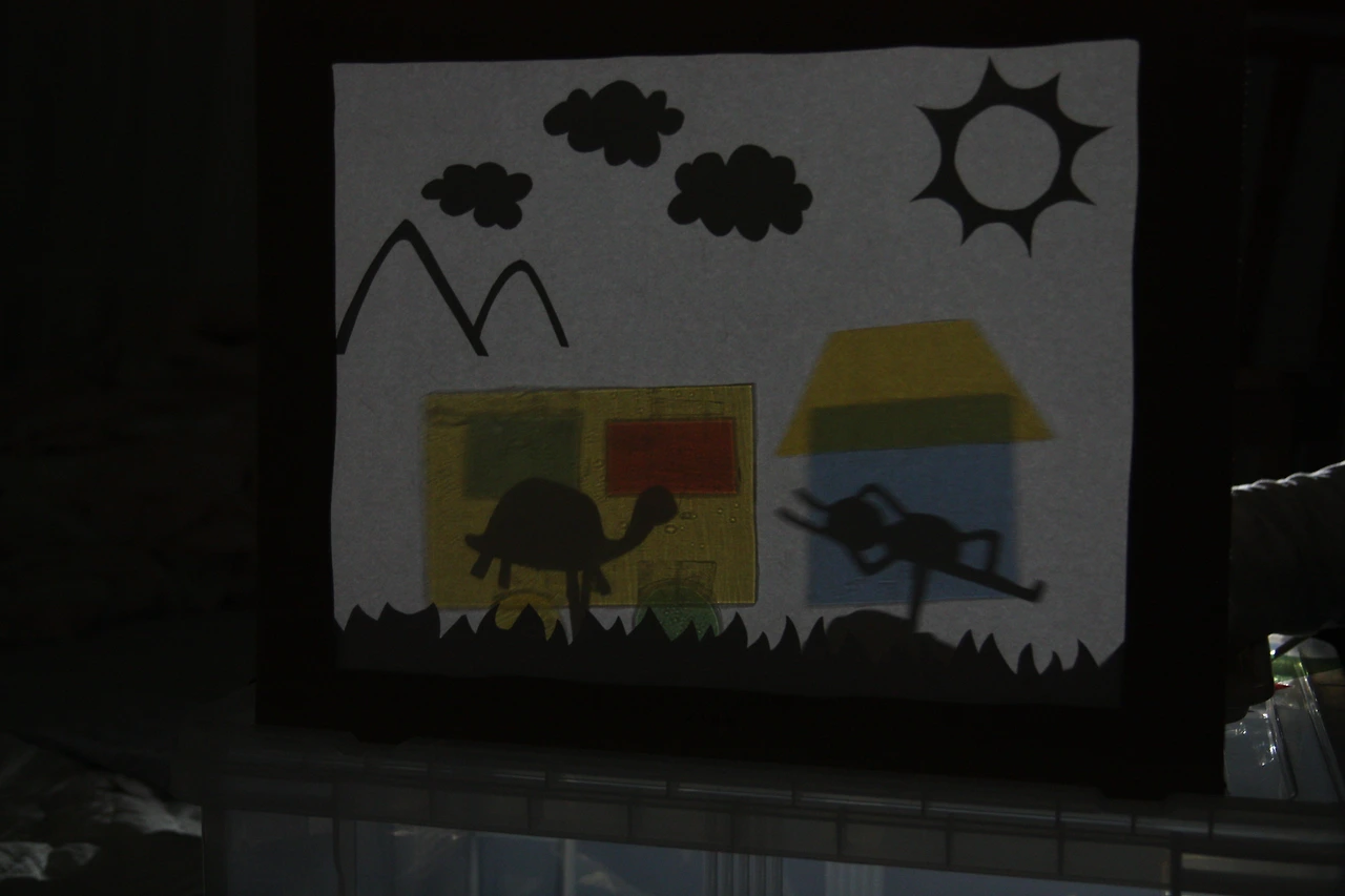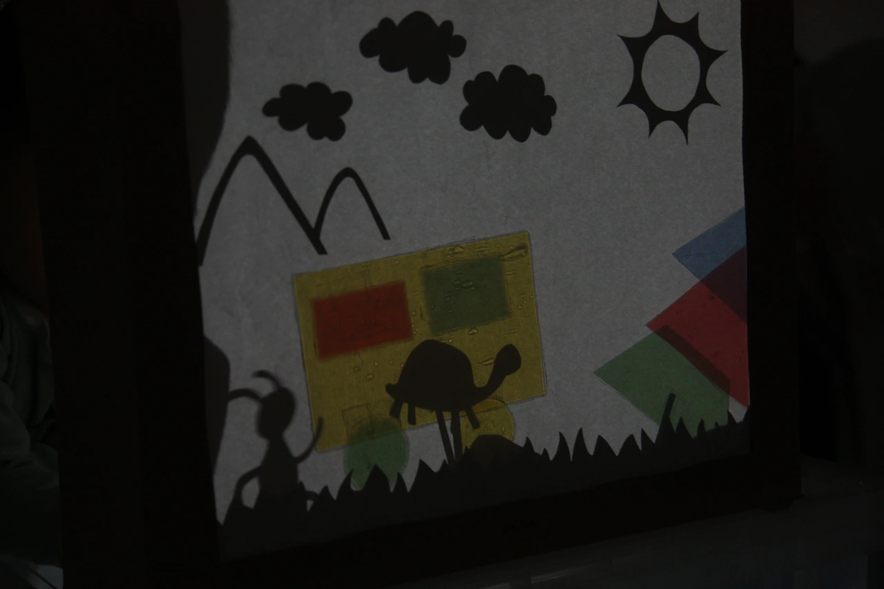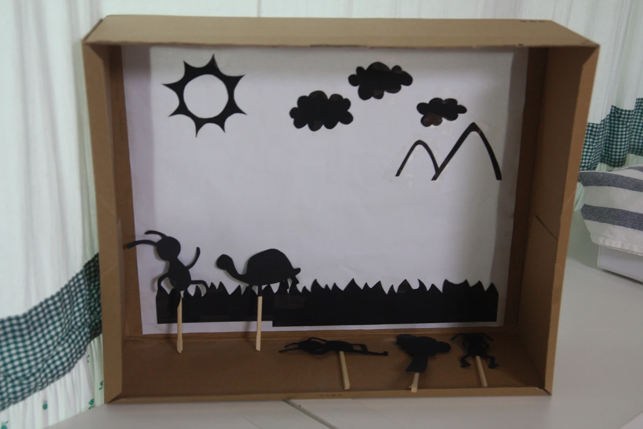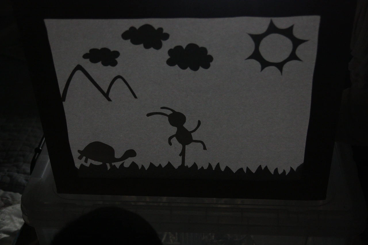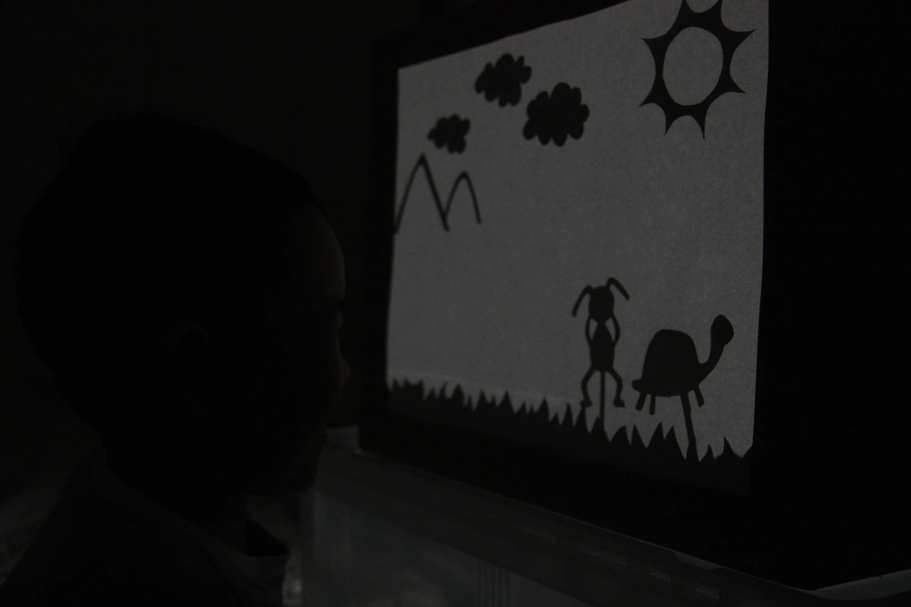 오늘의 그림자 인형극은 "토끼와 거북이"입니다.