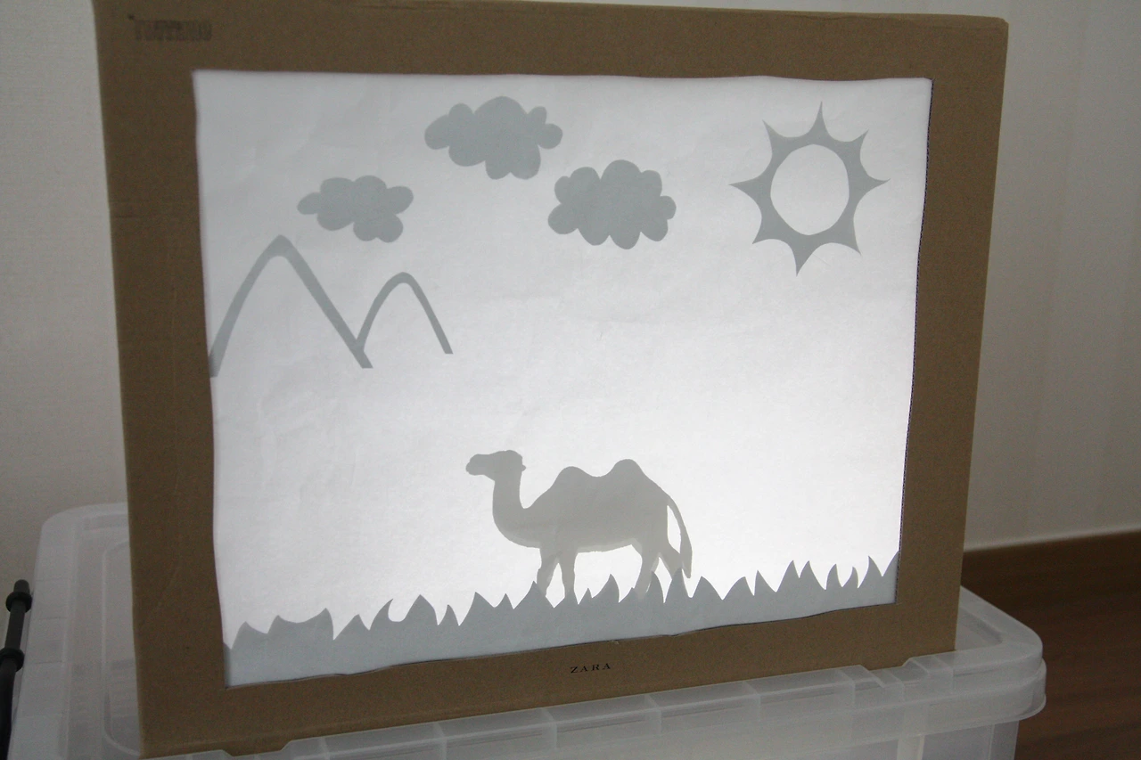 스마트폰에서 손전등 어플을 다운로드하여서 그림자 놀이를 하면 편해요.