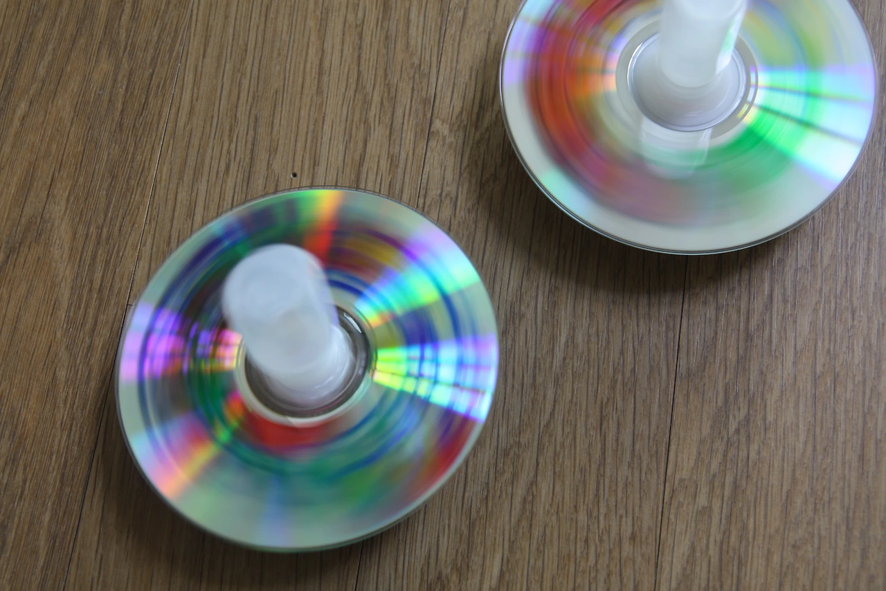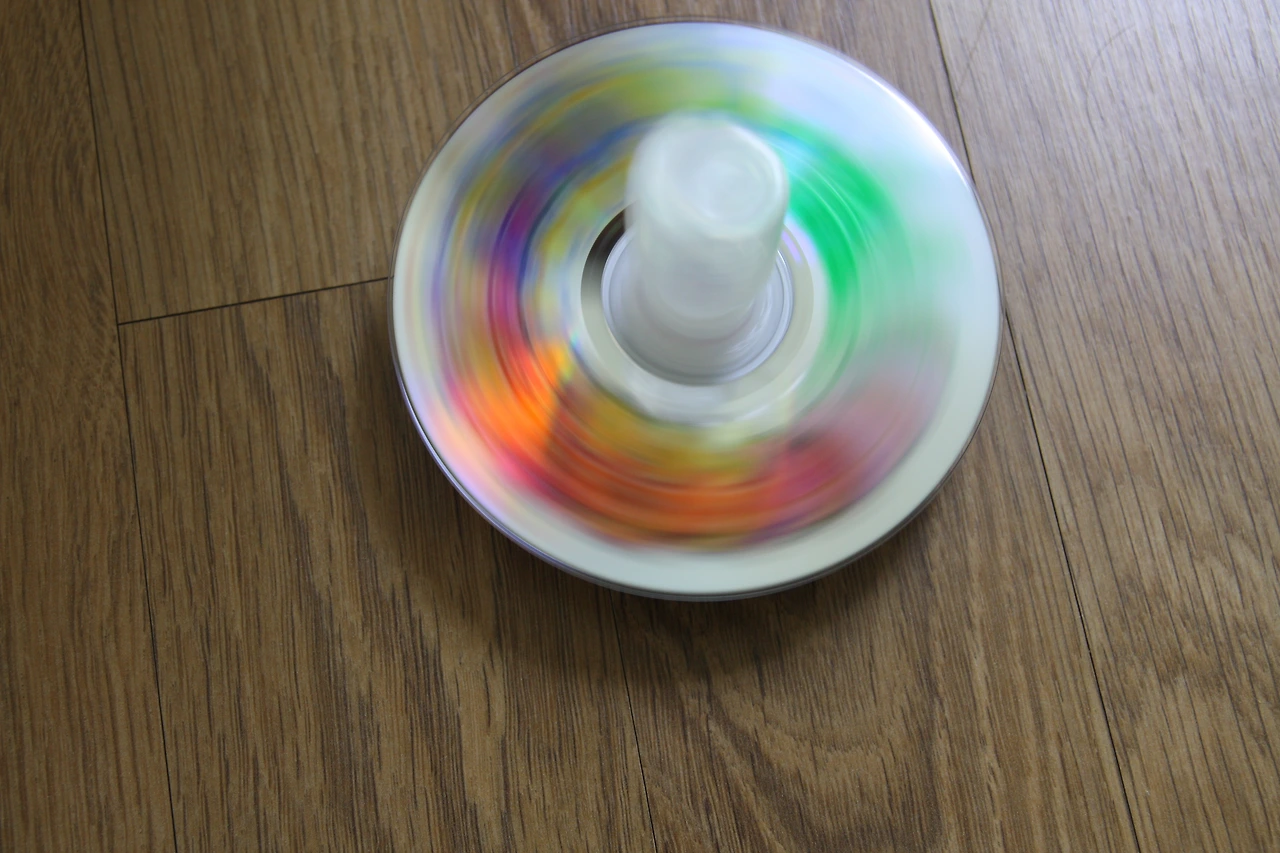 팽이를 돌릴 때 CD에 빛이 반사되어