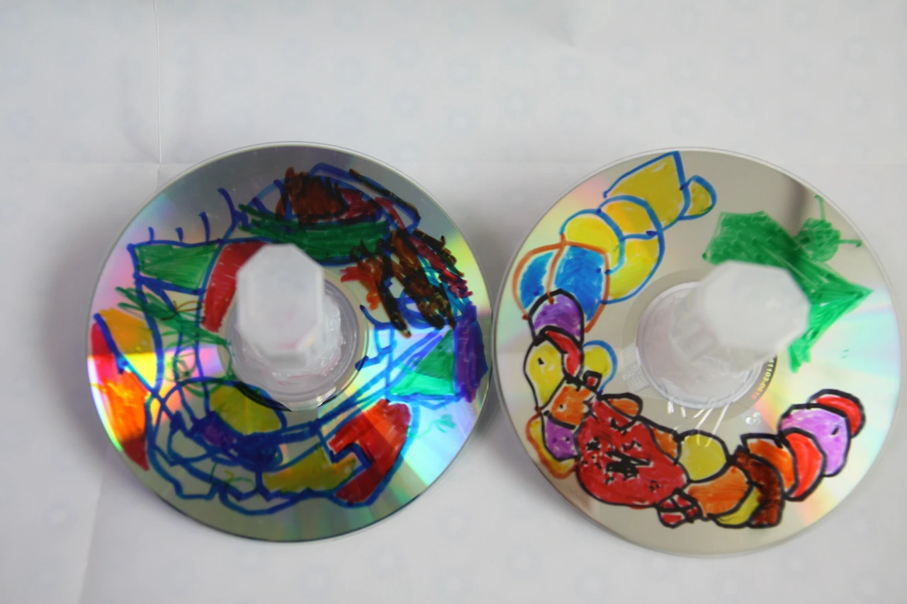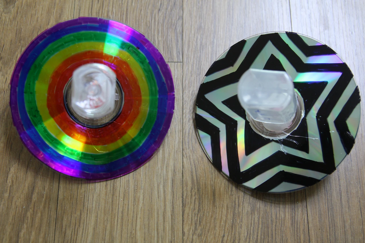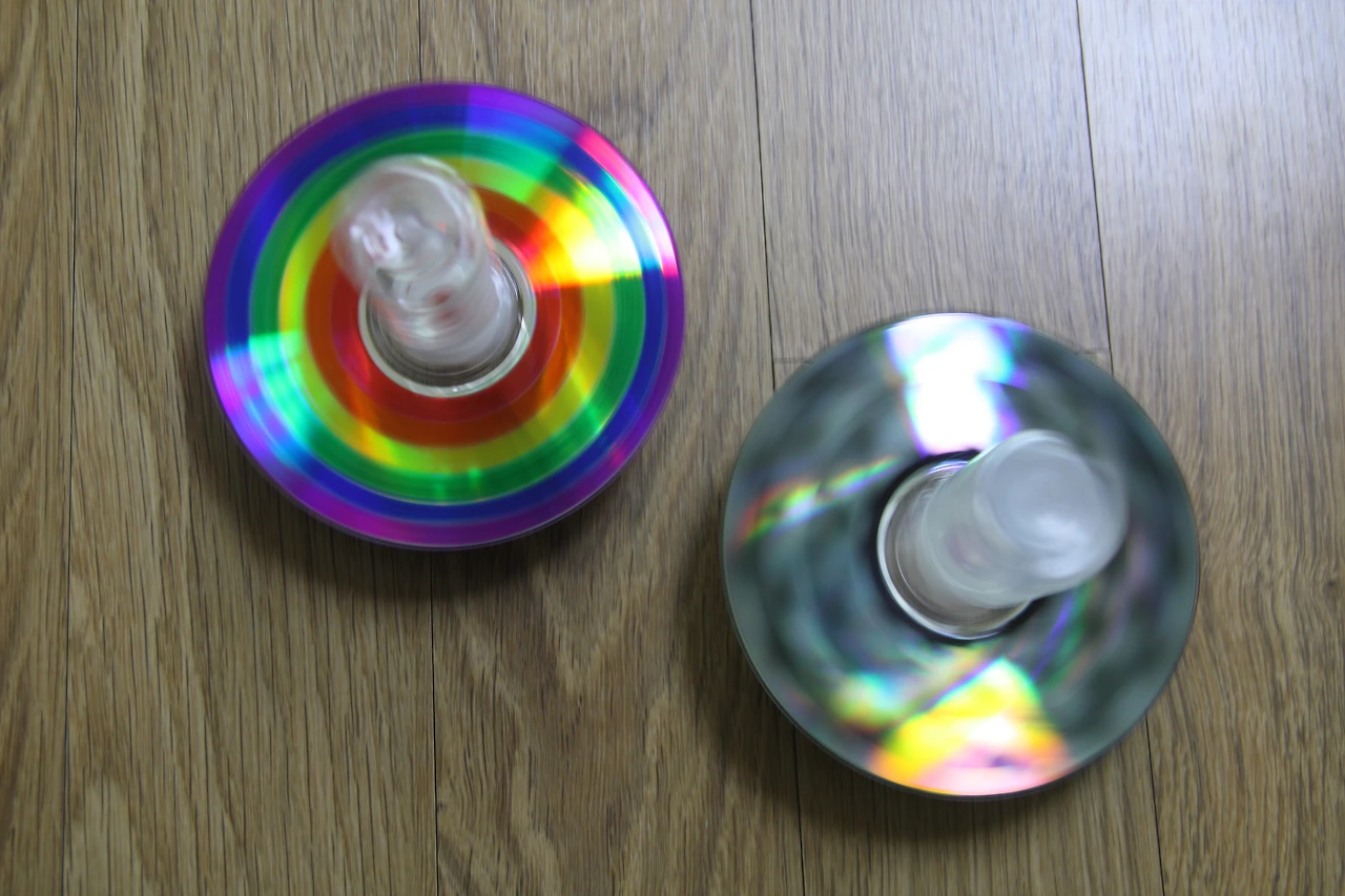 그냥 버릴 수도 있었던 CD와 물약병이 예쁜 무지개 팽이가 되어