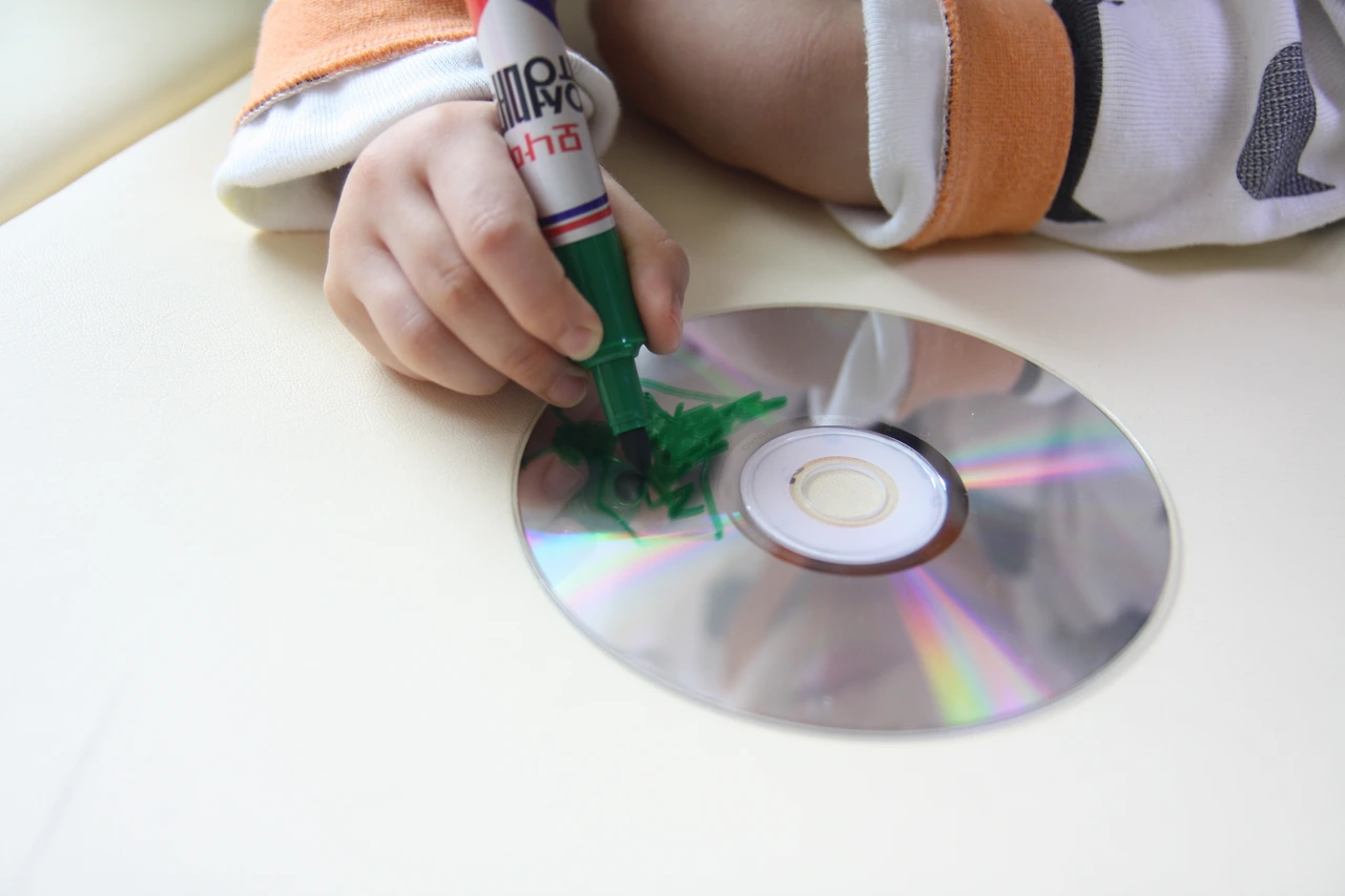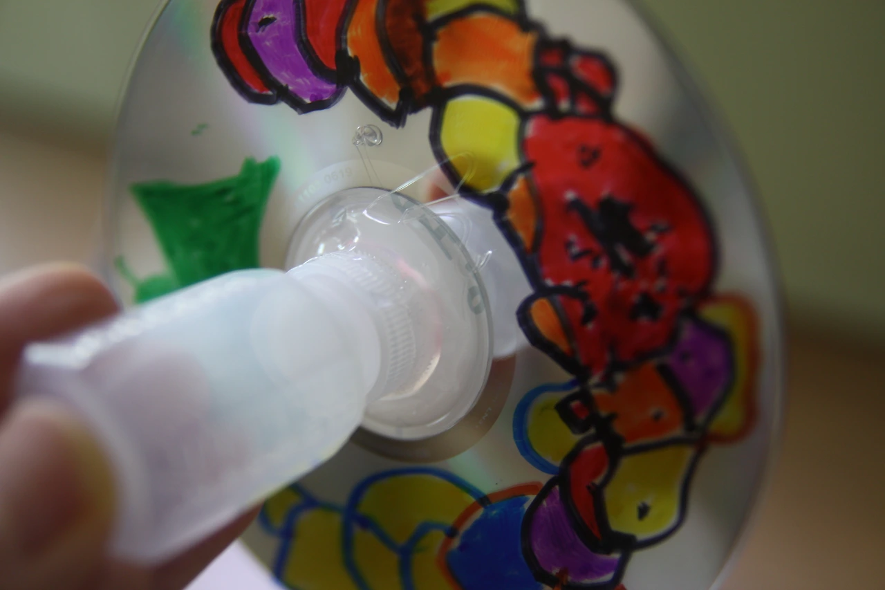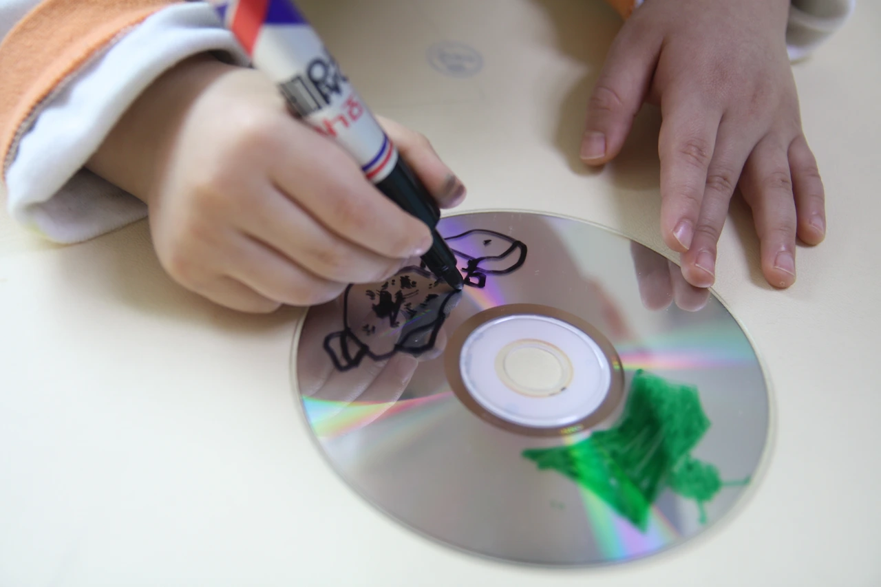 CD에 유성매직으로 자유롭게 그림을 그려줍니다.