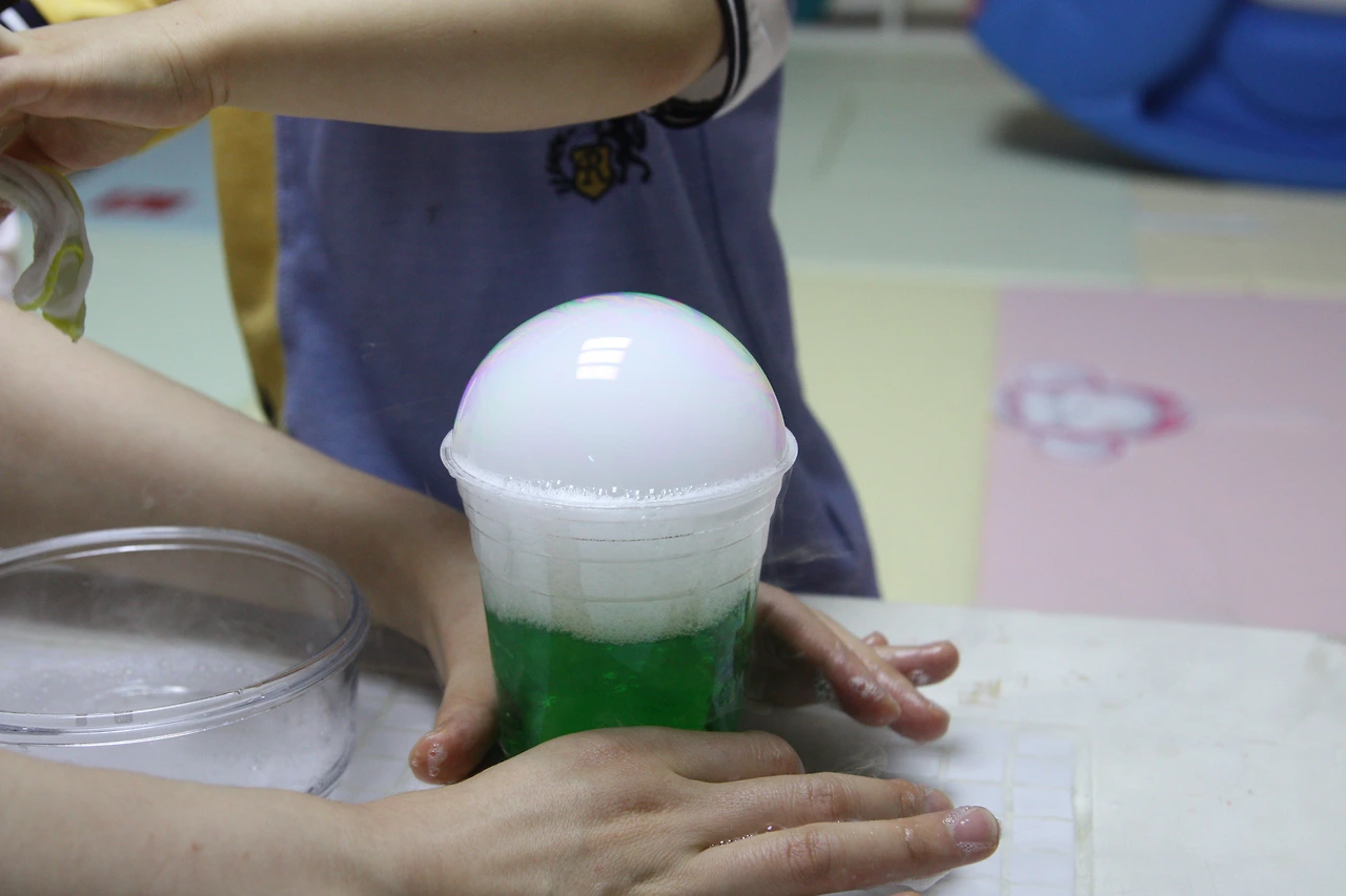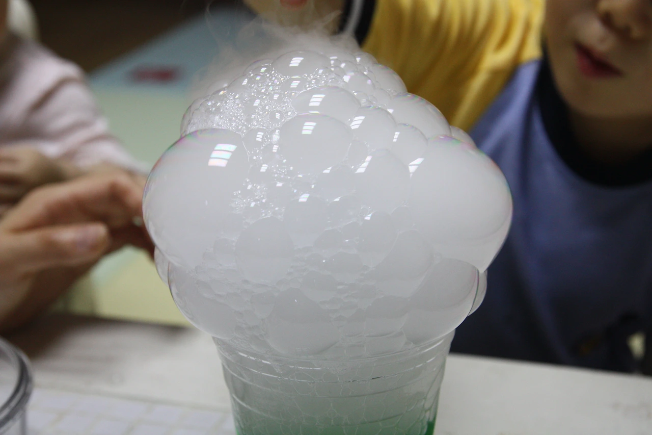 - 드라이아이스를 이용하여 대형 비누방울을 만들어본다.