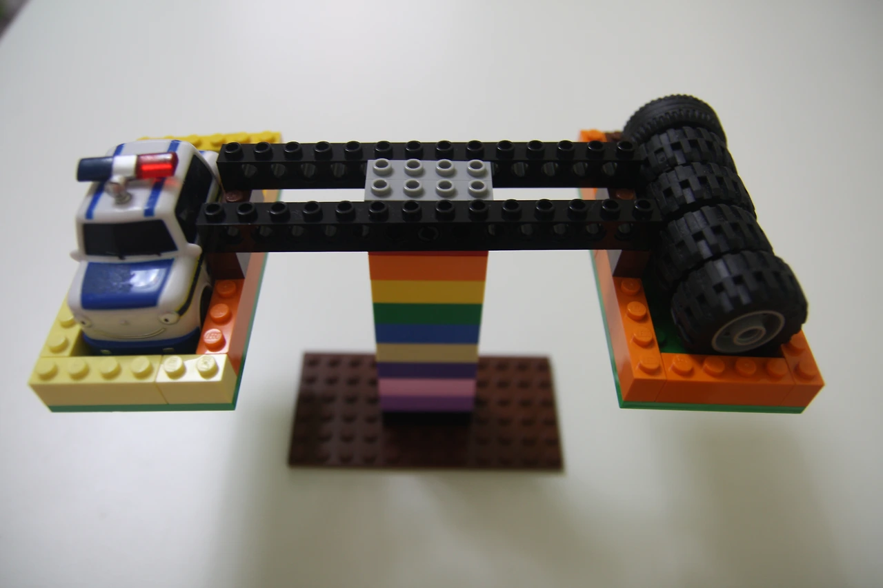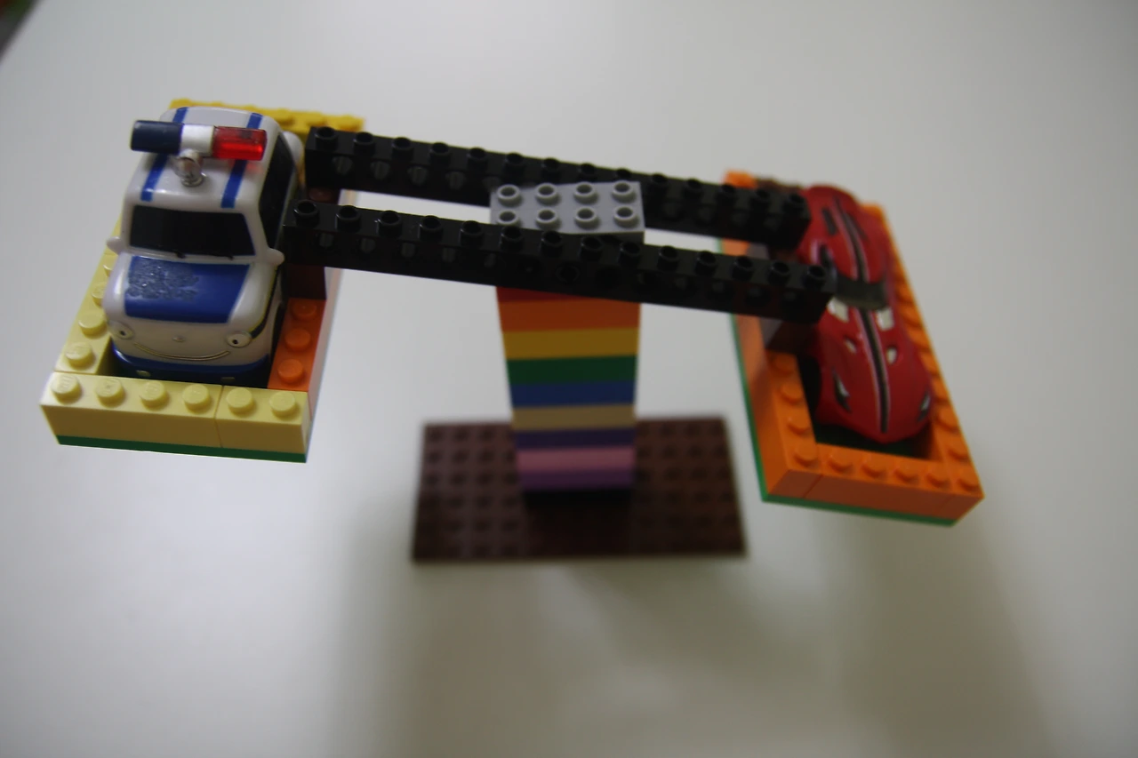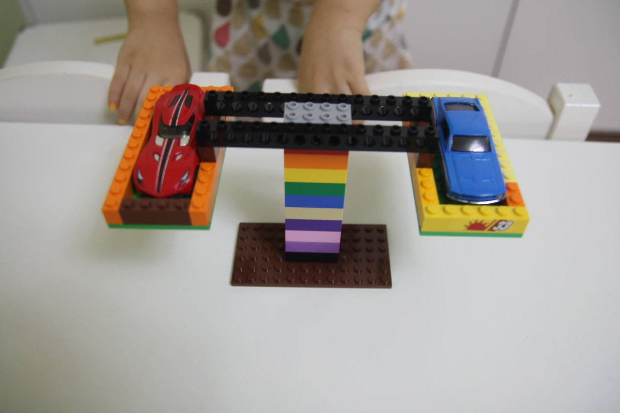 장난감 레고 블록으로 만든 양팔 저울입니다.