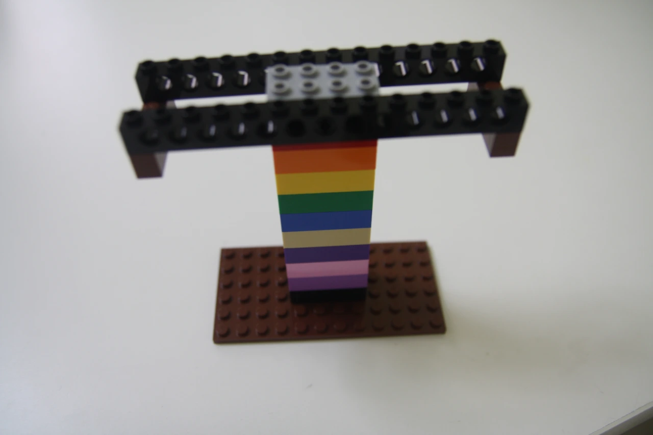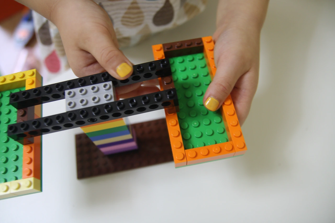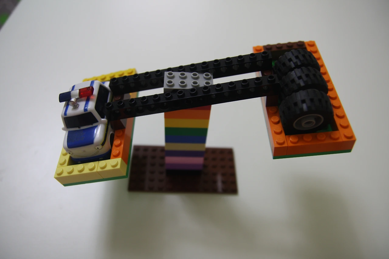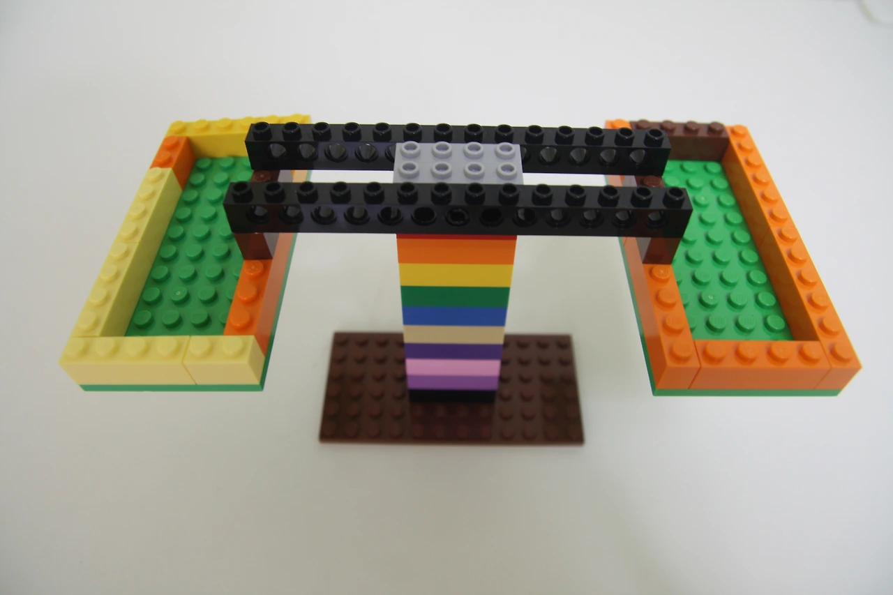 장난감 레고 블록으로 만든 양팔 저울입니다.
