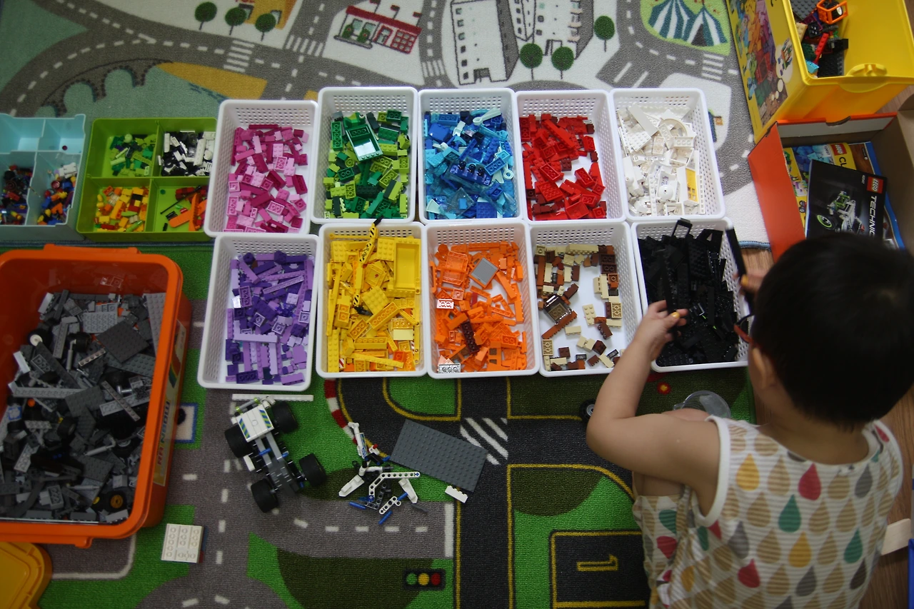 - 다양한 색깔과 크기의 레고 블록