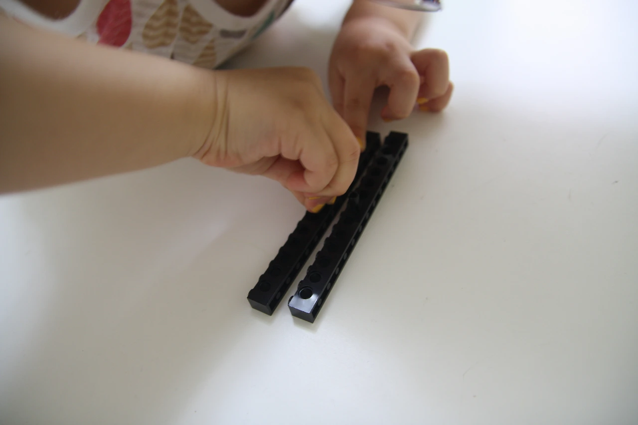 장난감을 양팔접시에 올려놓고 손가락으로 살짝 만져주어야