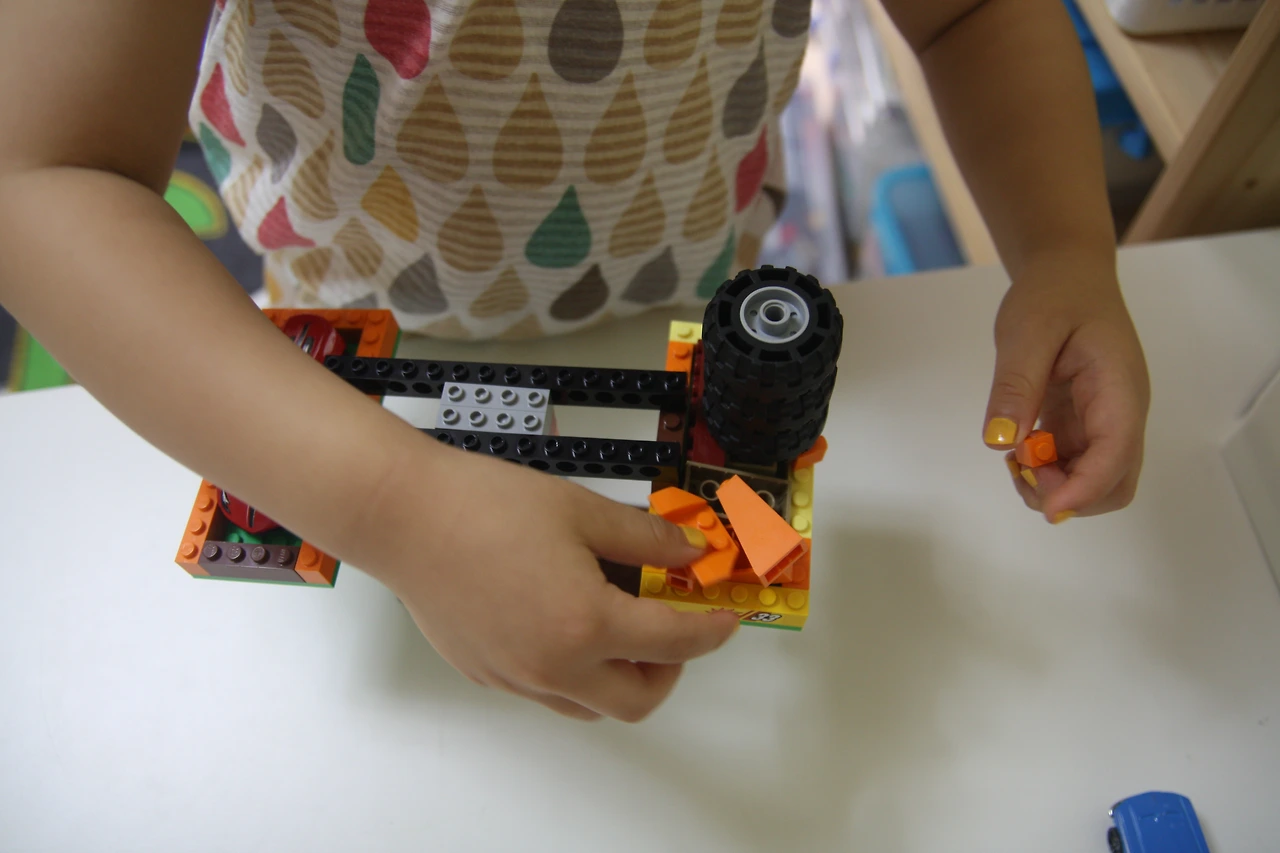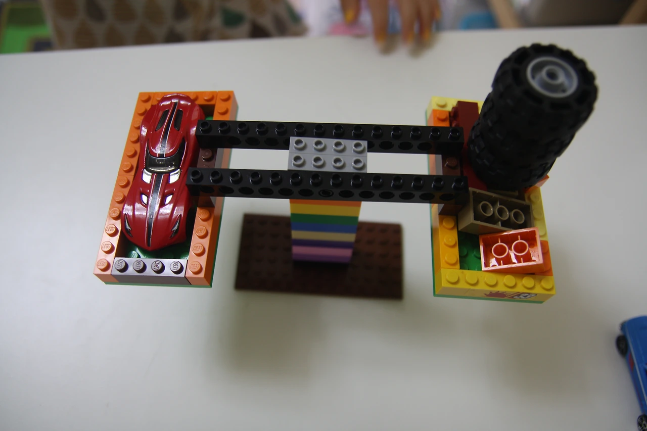 햇살이는 자동차의 무게를 레고 블록과 바퀴를 이용해서 측정해보기로 했어요.