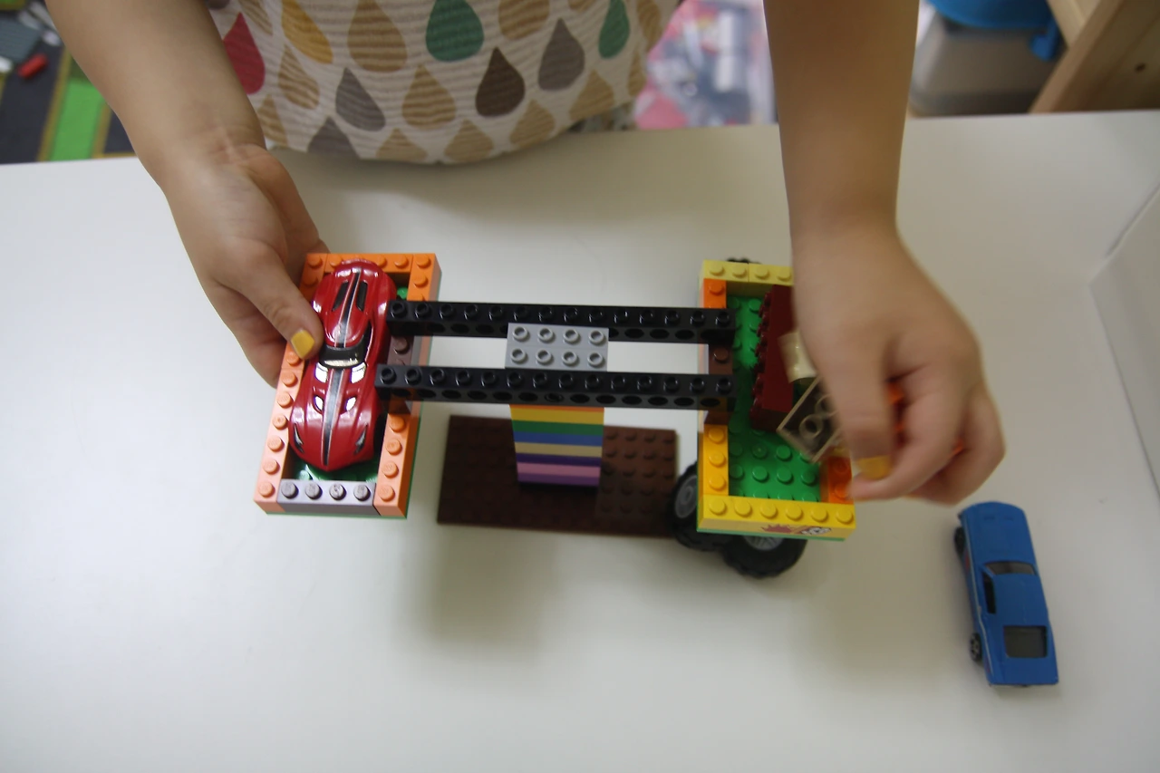 미니카의 무게를 측정하려면 같은 크기의 레고 블록을 이용해주세요.