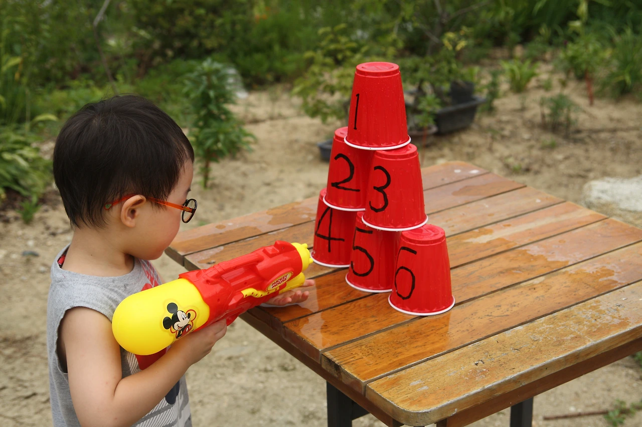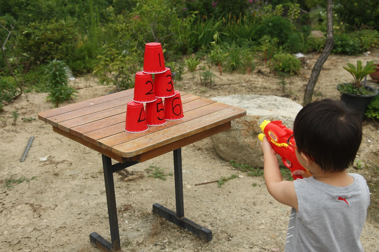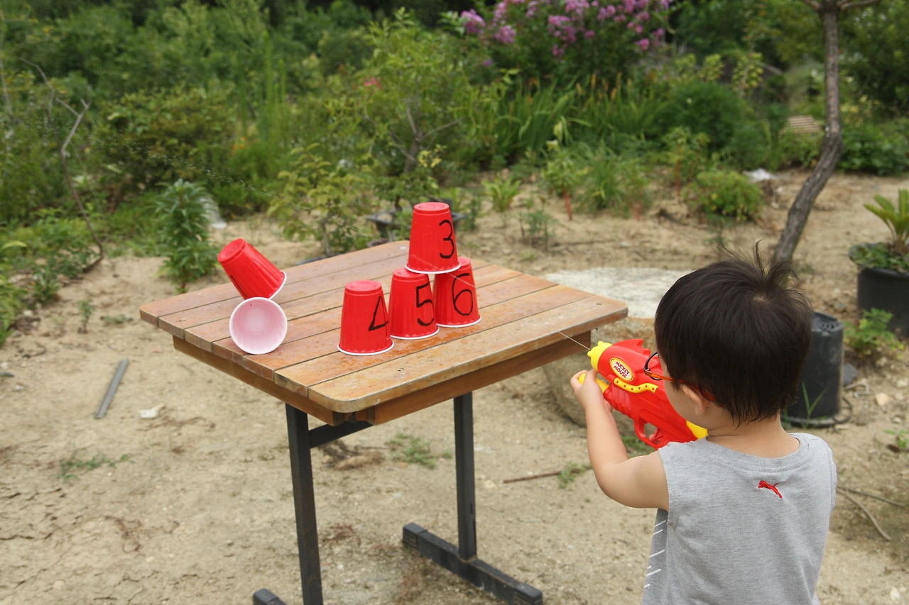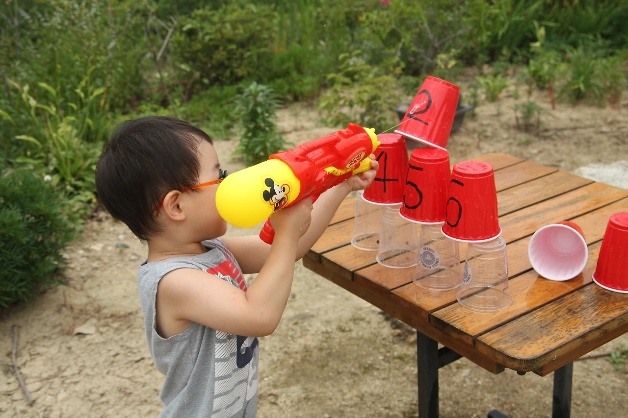 물총으로 맞춰서 쓰러트리는 놀이를 해볼 수 있도 있을 거에요.