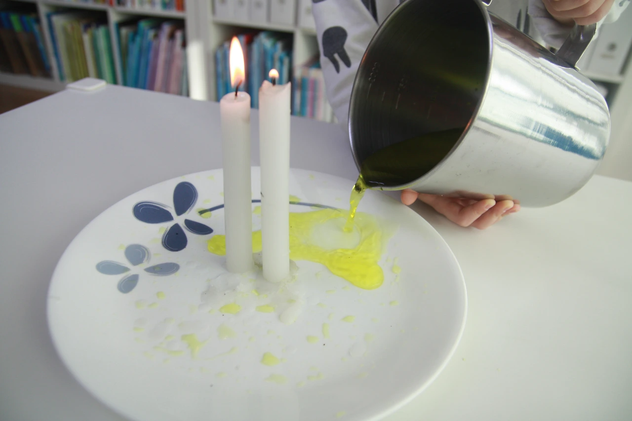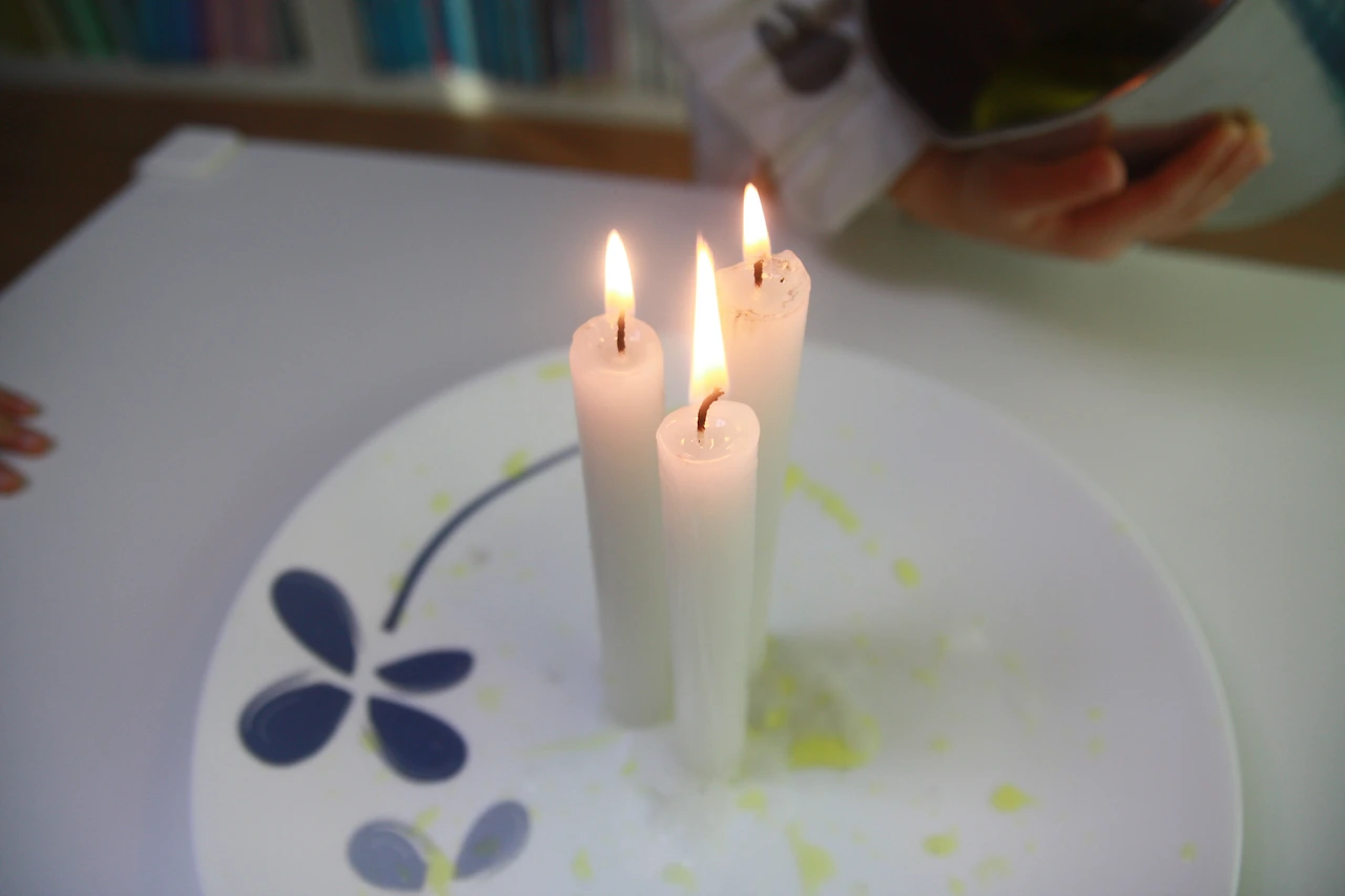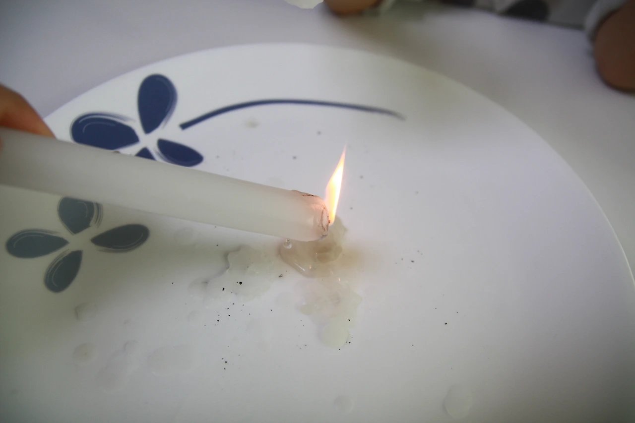 접시 위에 촛농을 조금 떨어트린 후,
