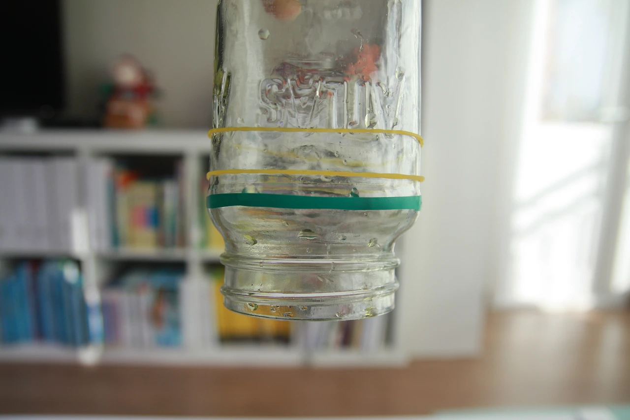 그 과정을 쉽게 관찰할 수 있게 고무줄로 표시를 해주었어요.